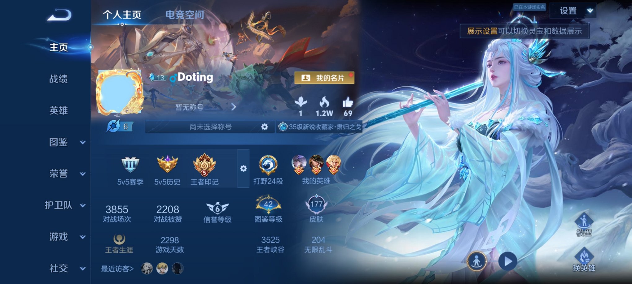 实名: 可修改 贵族等级: V4 英雄数: 84 皮肤数: 62 传说皮: 冠