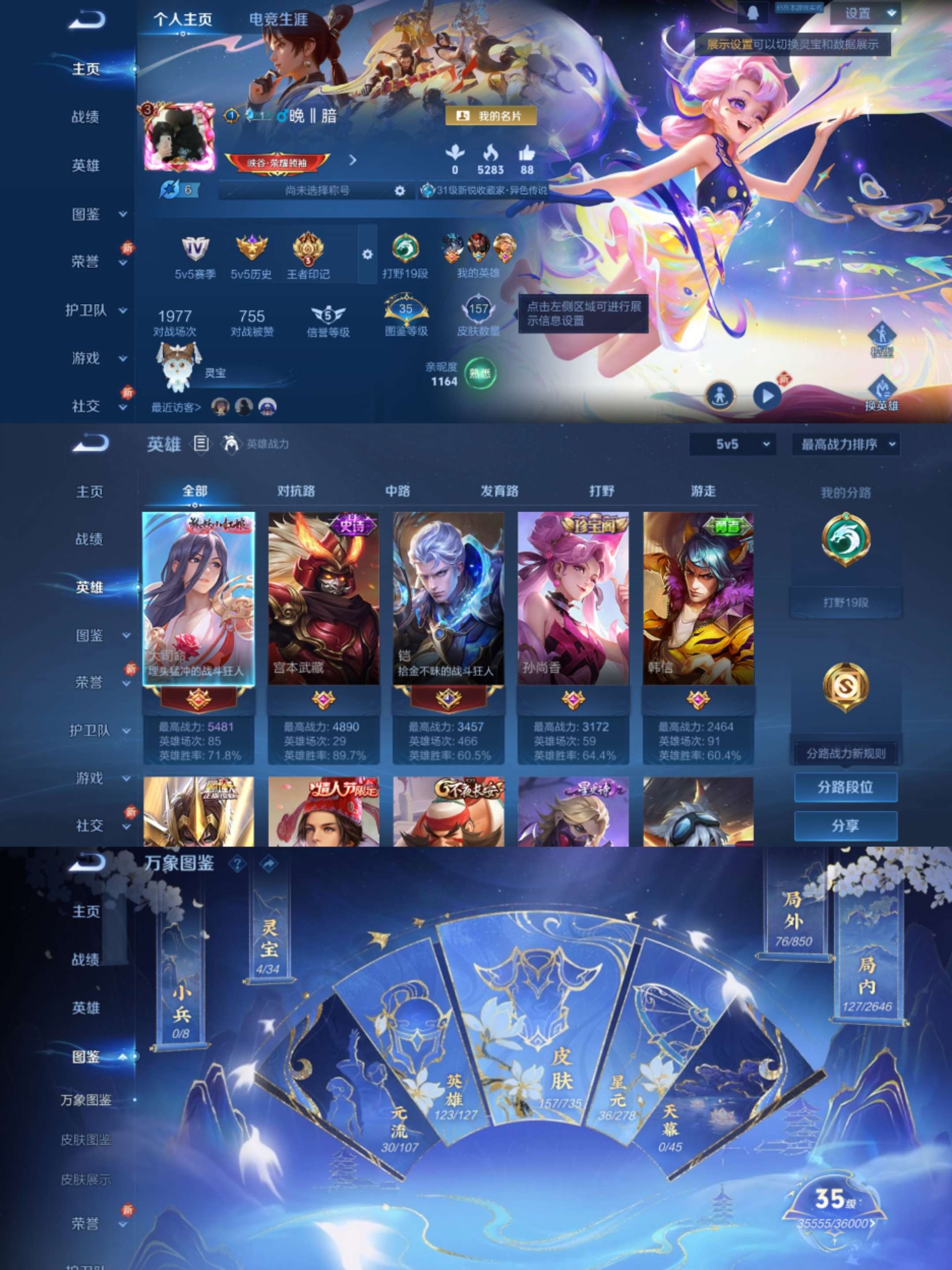 安卓QQ/荣耀王者/300皮肤/126英雄/1典藏/0珍品无双/1无双/0珍品传说/14传说/90史