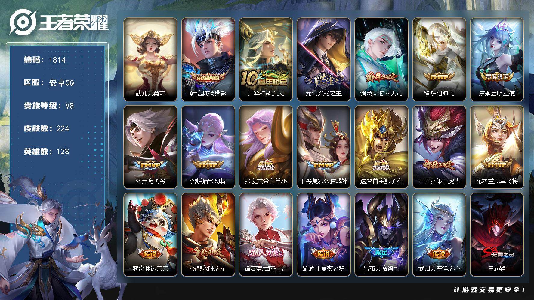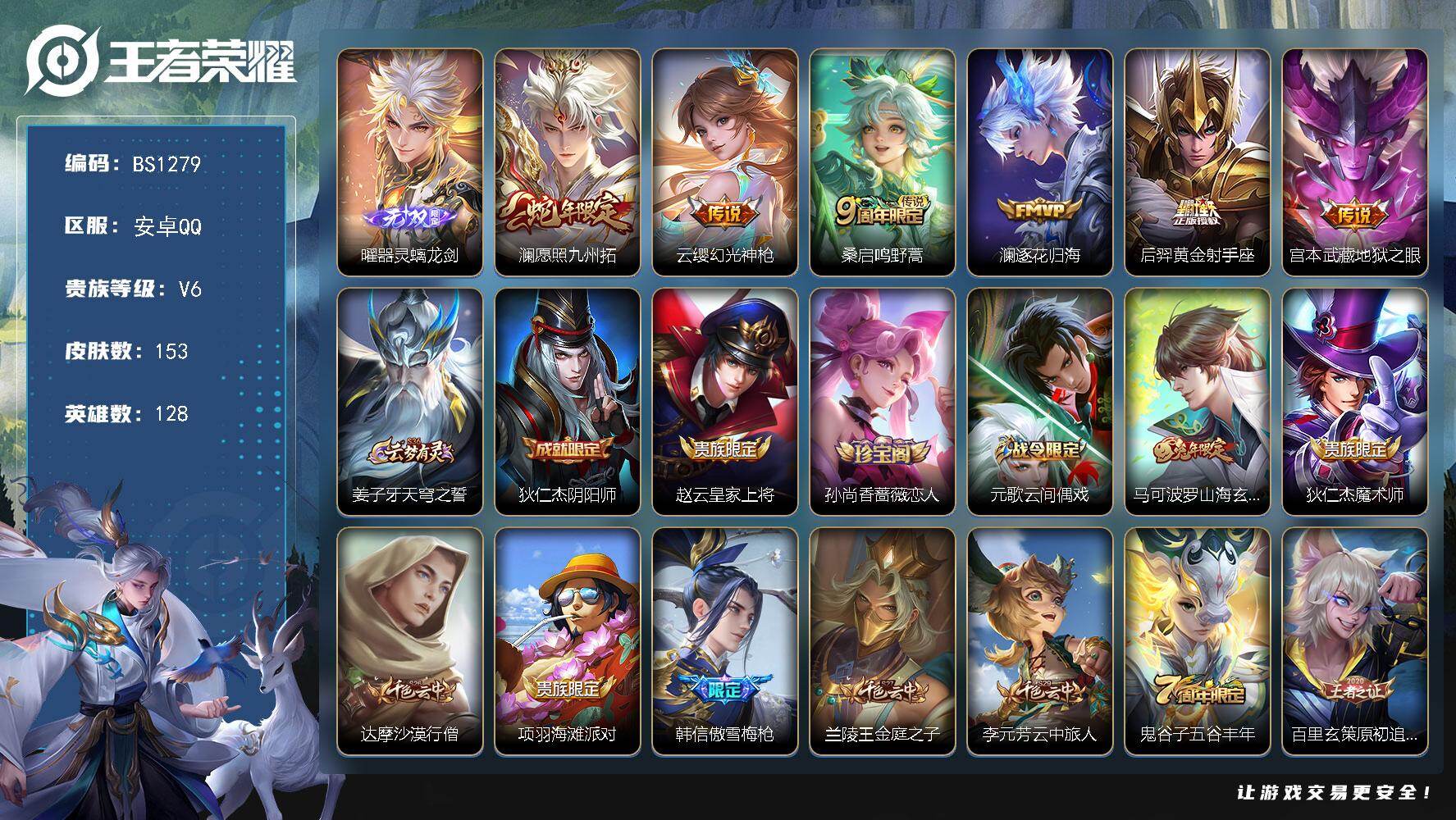 安卓Q-V6-至尊星耀III段位-128英雄-153皮肤-1无双-6传说-39