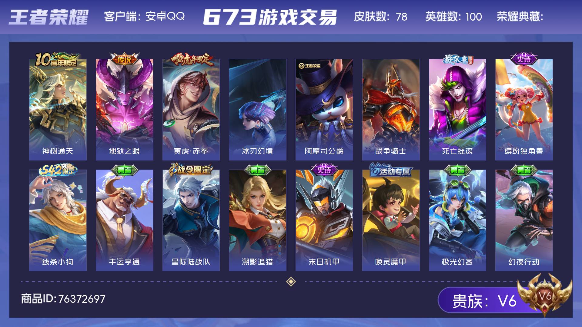 V6 皮肤78 英雄100 永恒钻石 星传说1 传说3