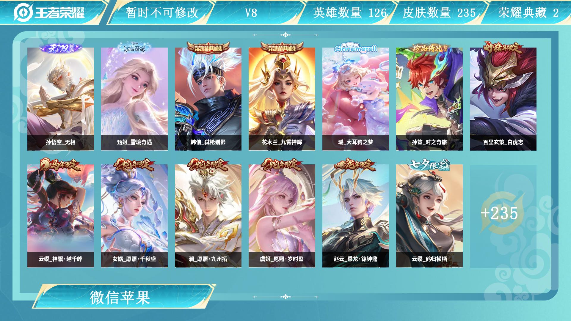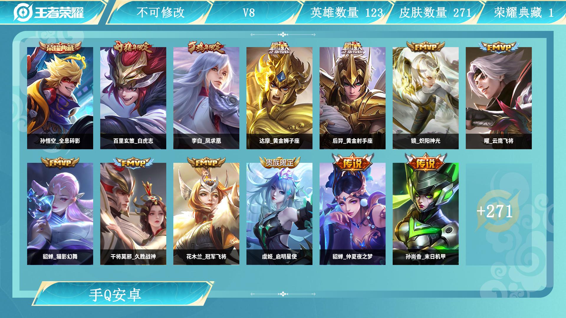 嫦娥珍品!2愿照!皮肤数量143印记总数5V7非凡王者可修改