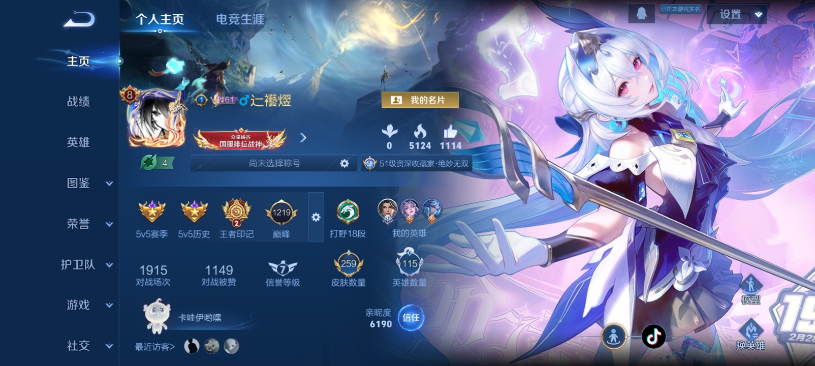 苹果QQ/最强王者/191皮肤/124英雄/2典藏/0珍品无双/0无双/0珍品传说/4传说/52史诗