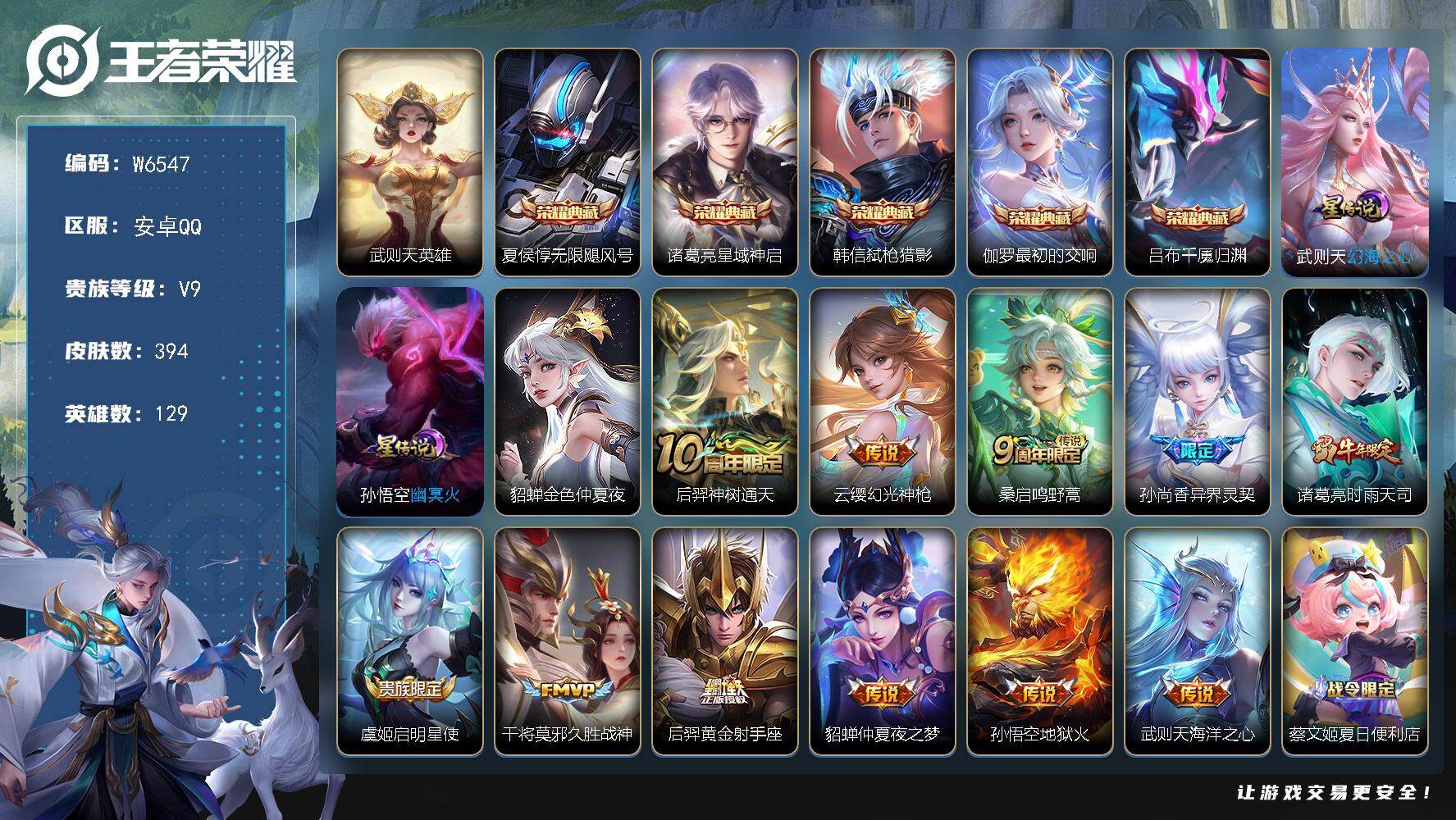 可二次-贵9-129英雄-394皮肤-6典藏(武则天)-11传说-2天幕-3星元-8100星币-14按键