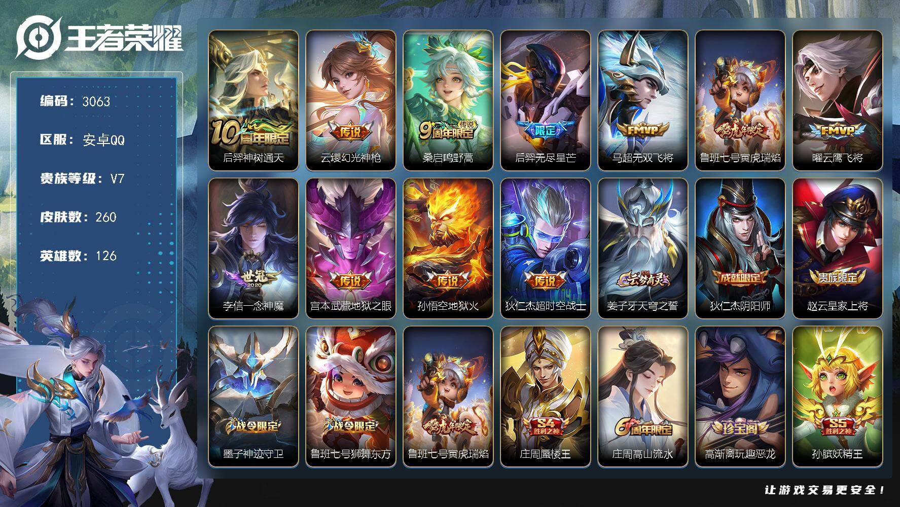 安卓Q-V7-最强王者段位-126英雄-260皮肤-0典藏-0珍品无双-0无双