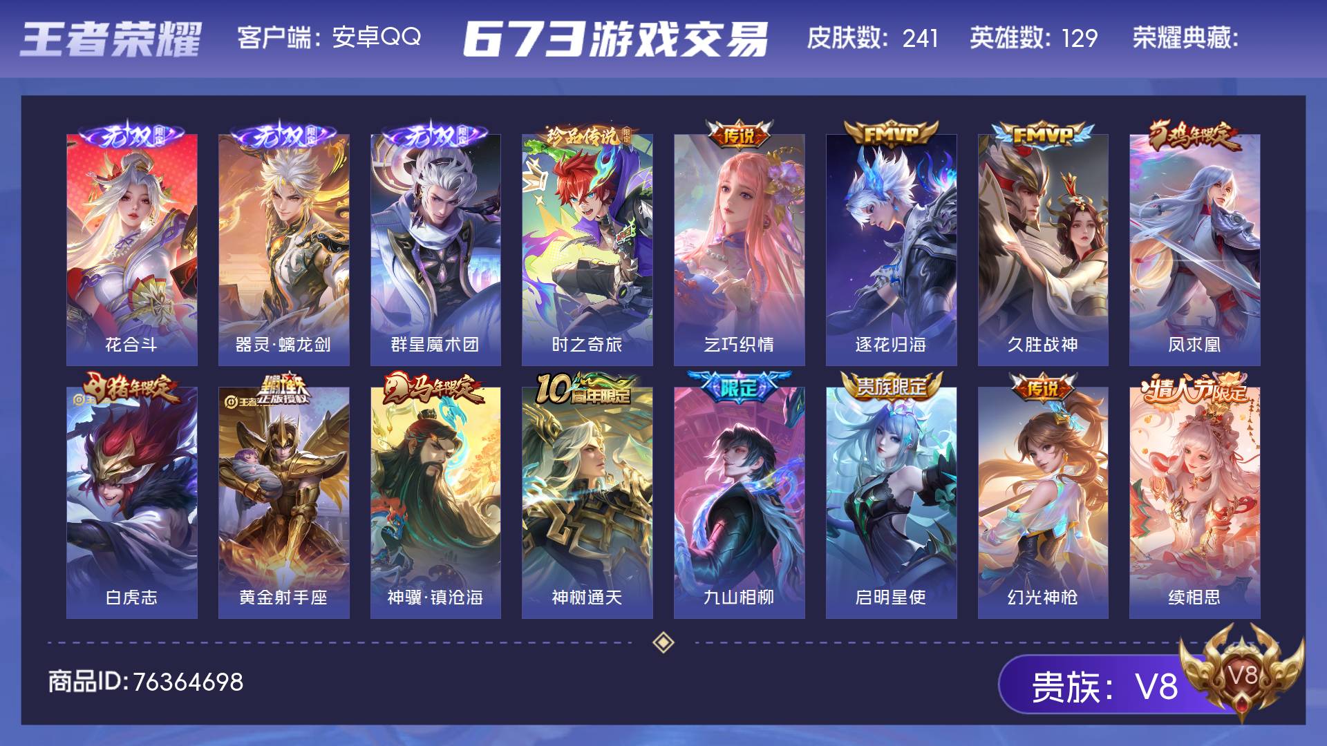 【W6662】安卓Q区-可二次-贵8-129英雄-377皮肤-2典藏(武则天)