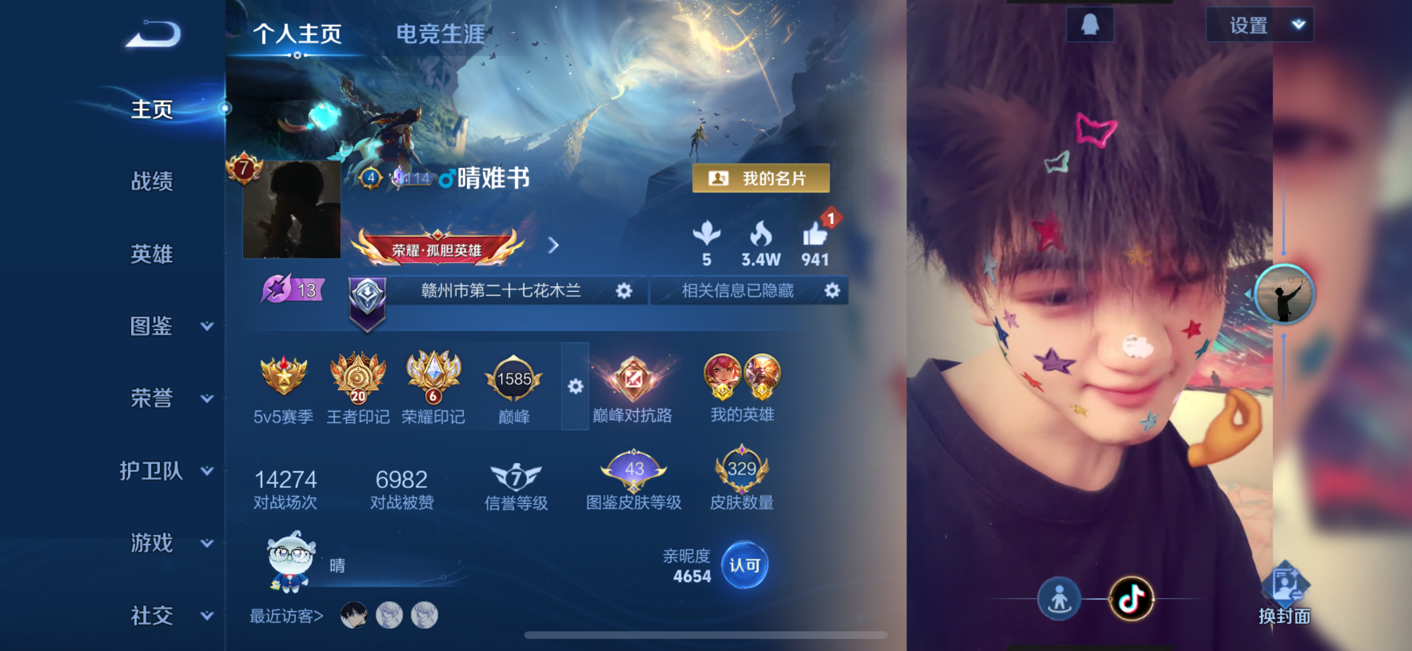 安卓QQ/至尊星耀/329皮肤/125英雄/4典藏/0珍品无双/2无双/3珍品传说/27传说/88史