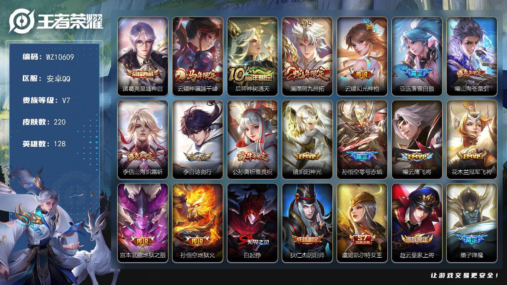 安卓Q-V7-最强王者段位-128英雄-220皮肤-1典藏皮肤-15传说-63