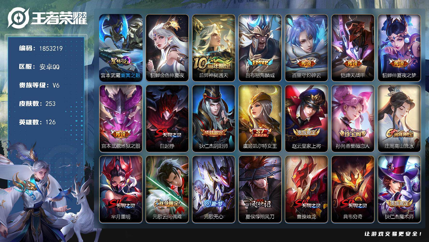 V6-永恒钻石I段位-126英雄-253皮肤-6传说-50史诗