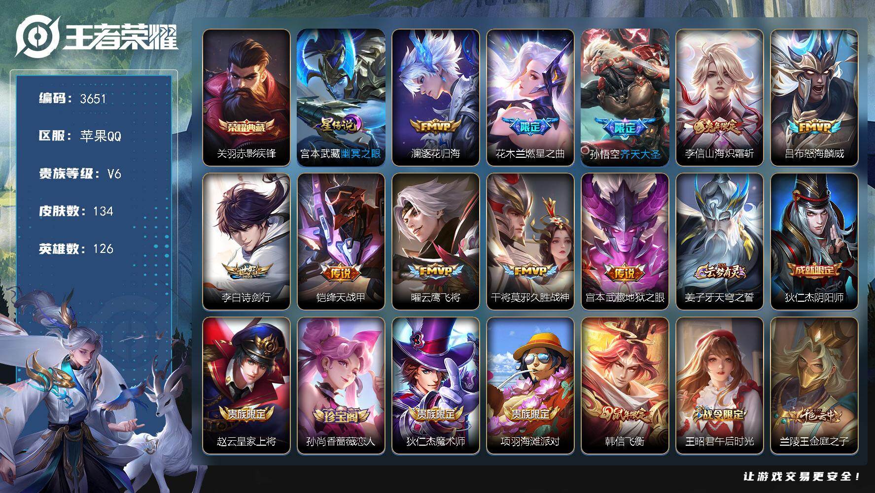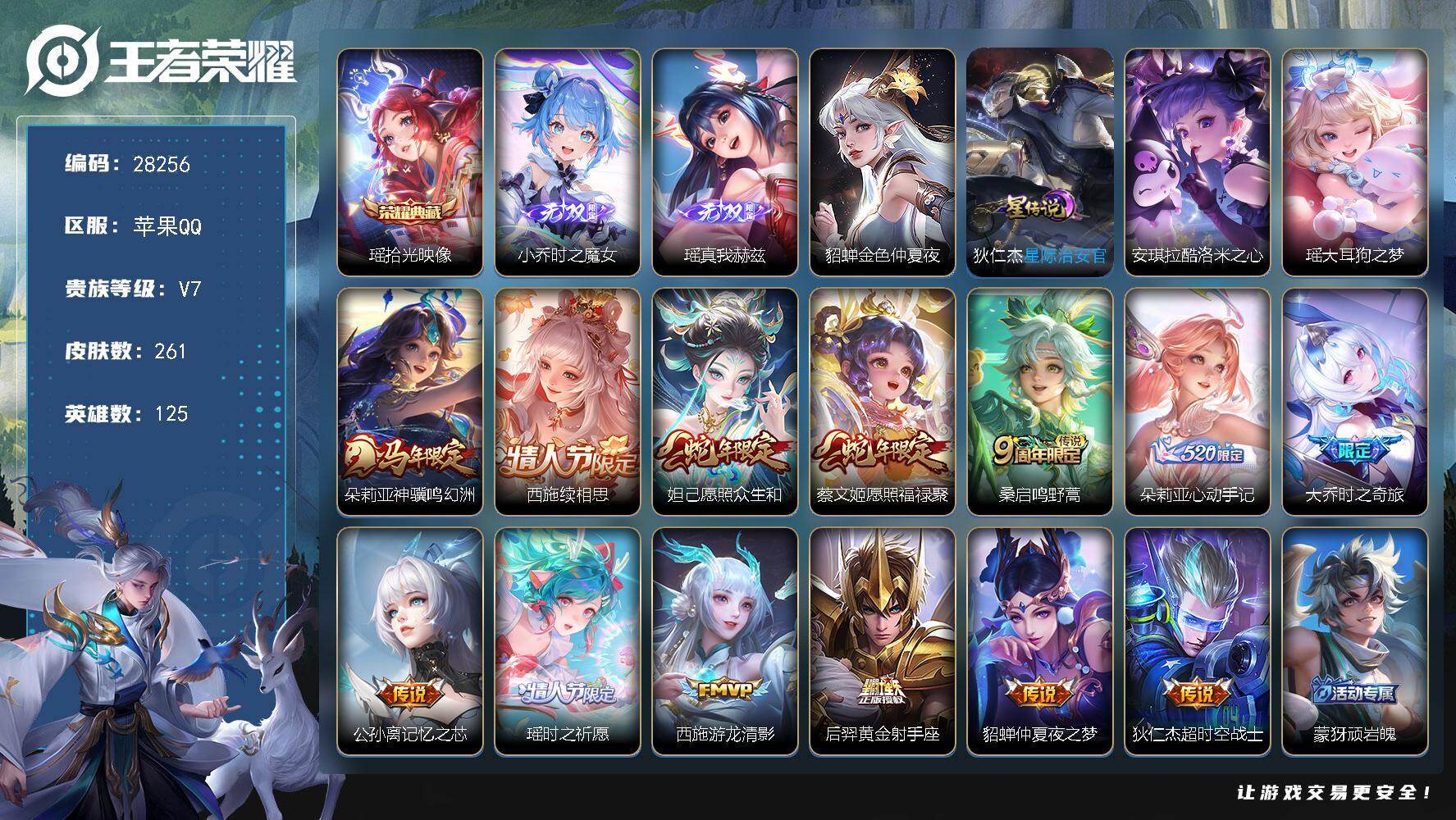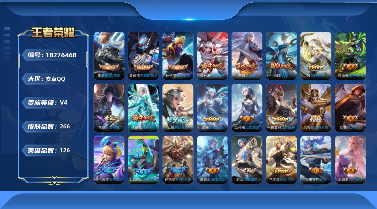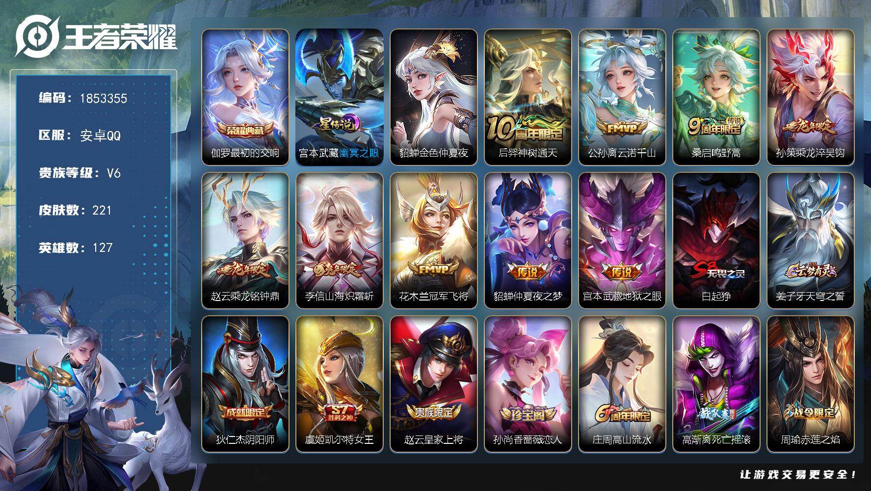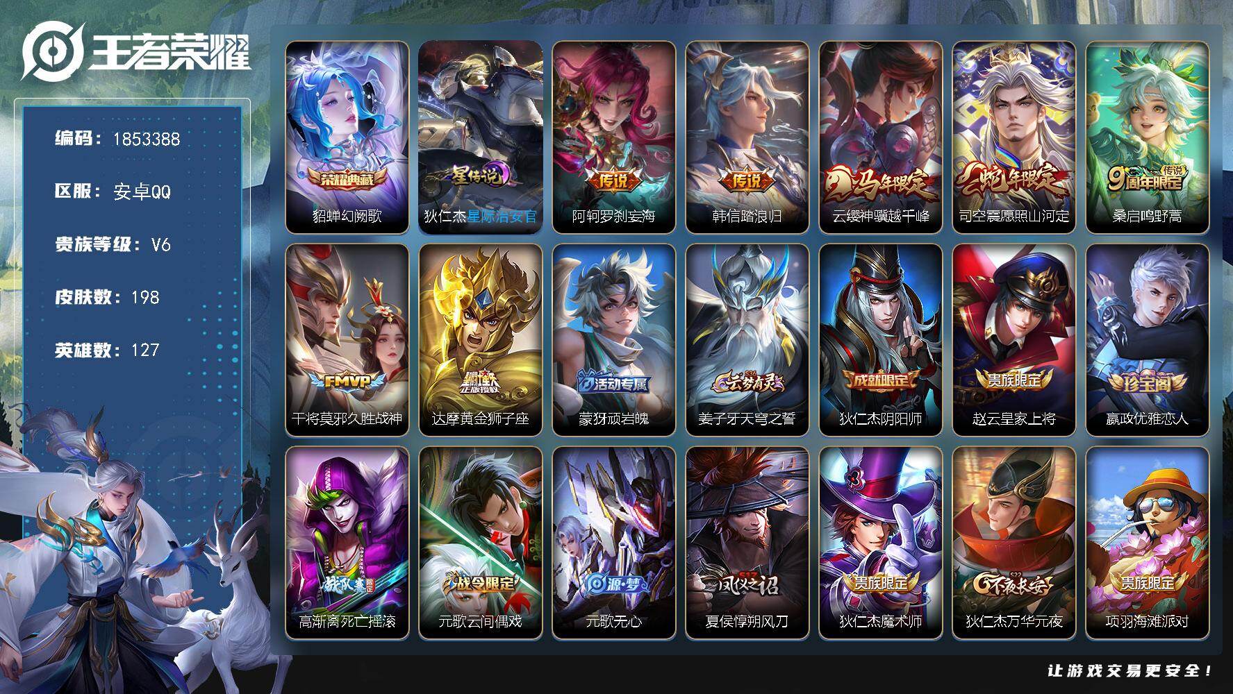 V6-最强王者段位-127英雄-198皮肤-1典藏皮肤-7传说-50史诗