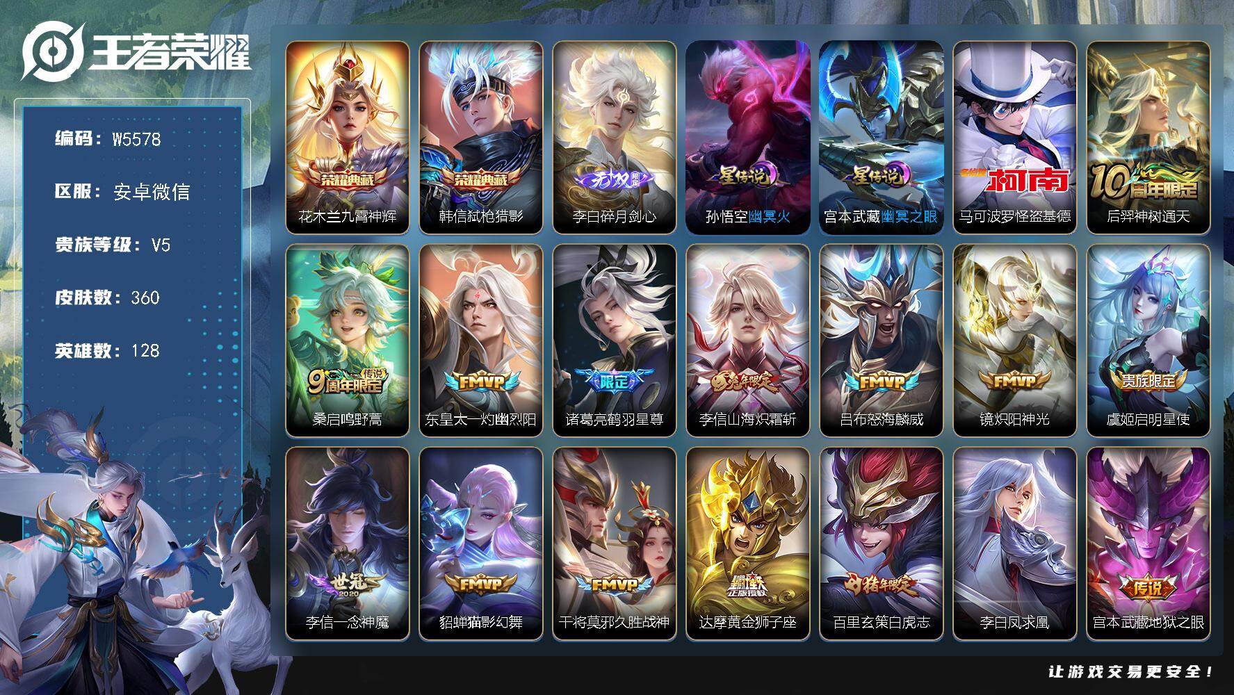 无二次-贵8-128英雄-360皮肤-2典藏-16传说-1无双-1珍品-118限定-107史诗-2星元-5按键