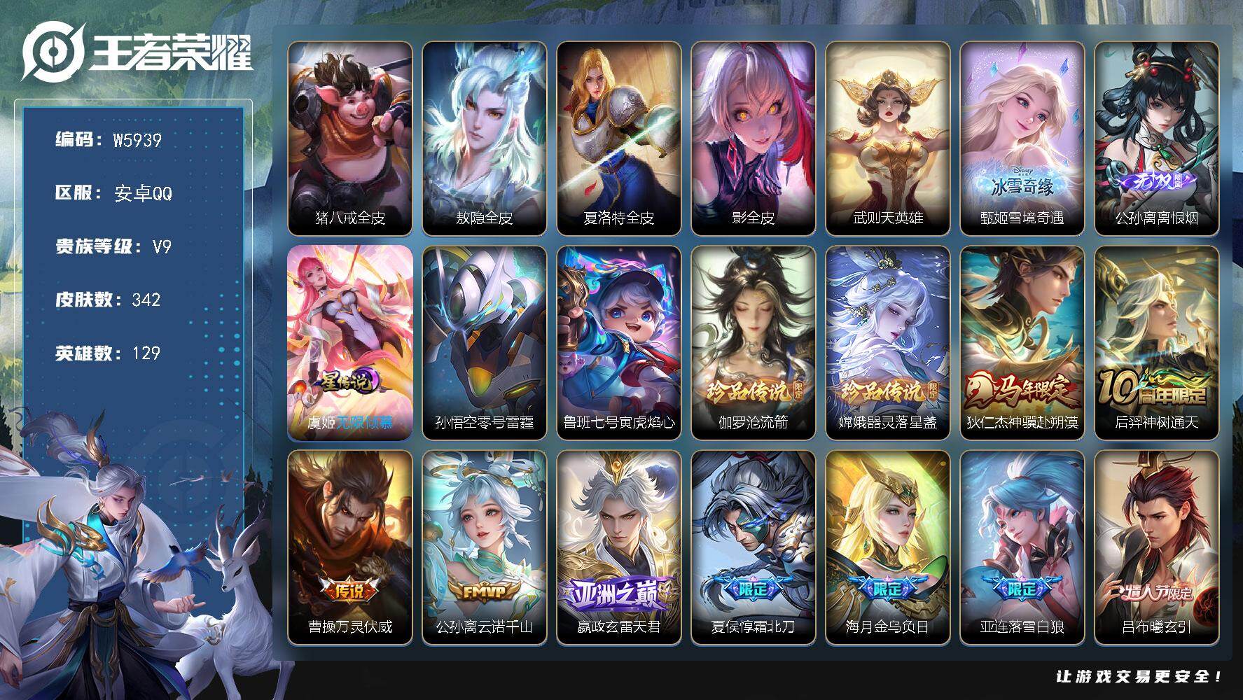 不可二次-贵9-129英雄-342皮肤-2典藏(武则天,小兵)-3星元-2无双-2珍品传说-46传说-146限定-5按键-满铭文