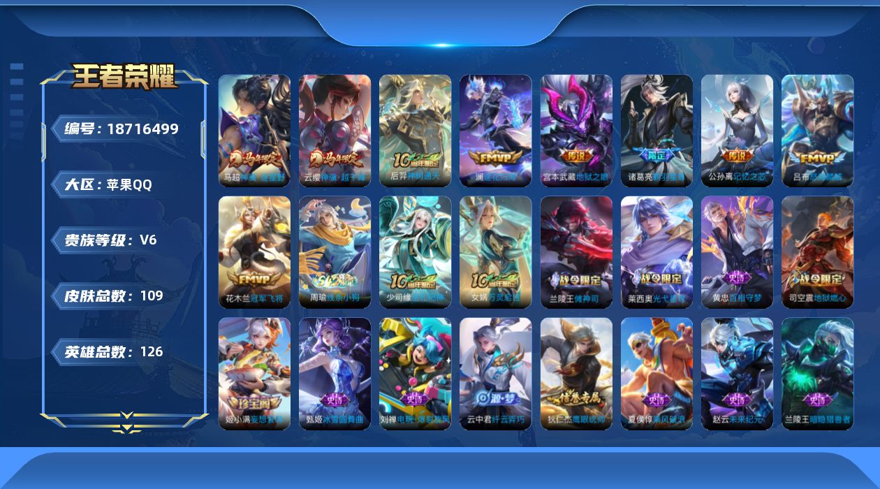 ]苹果Q-V6-至尊星耀II段位-126英雄-109皮肤-9传
