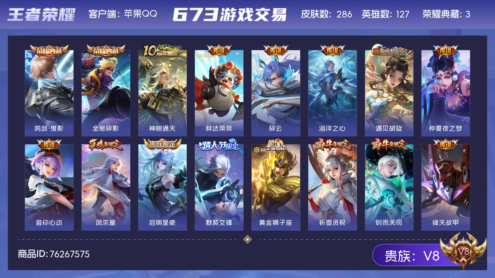 V8 皮肤286 英雄127 尊贵铂金 荣耀典藏3 传说18