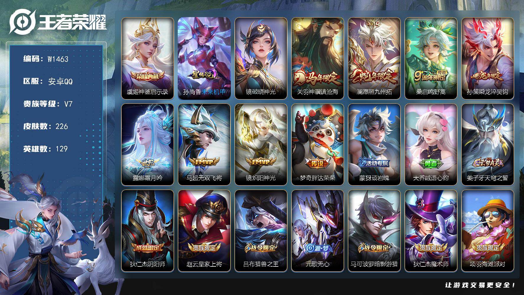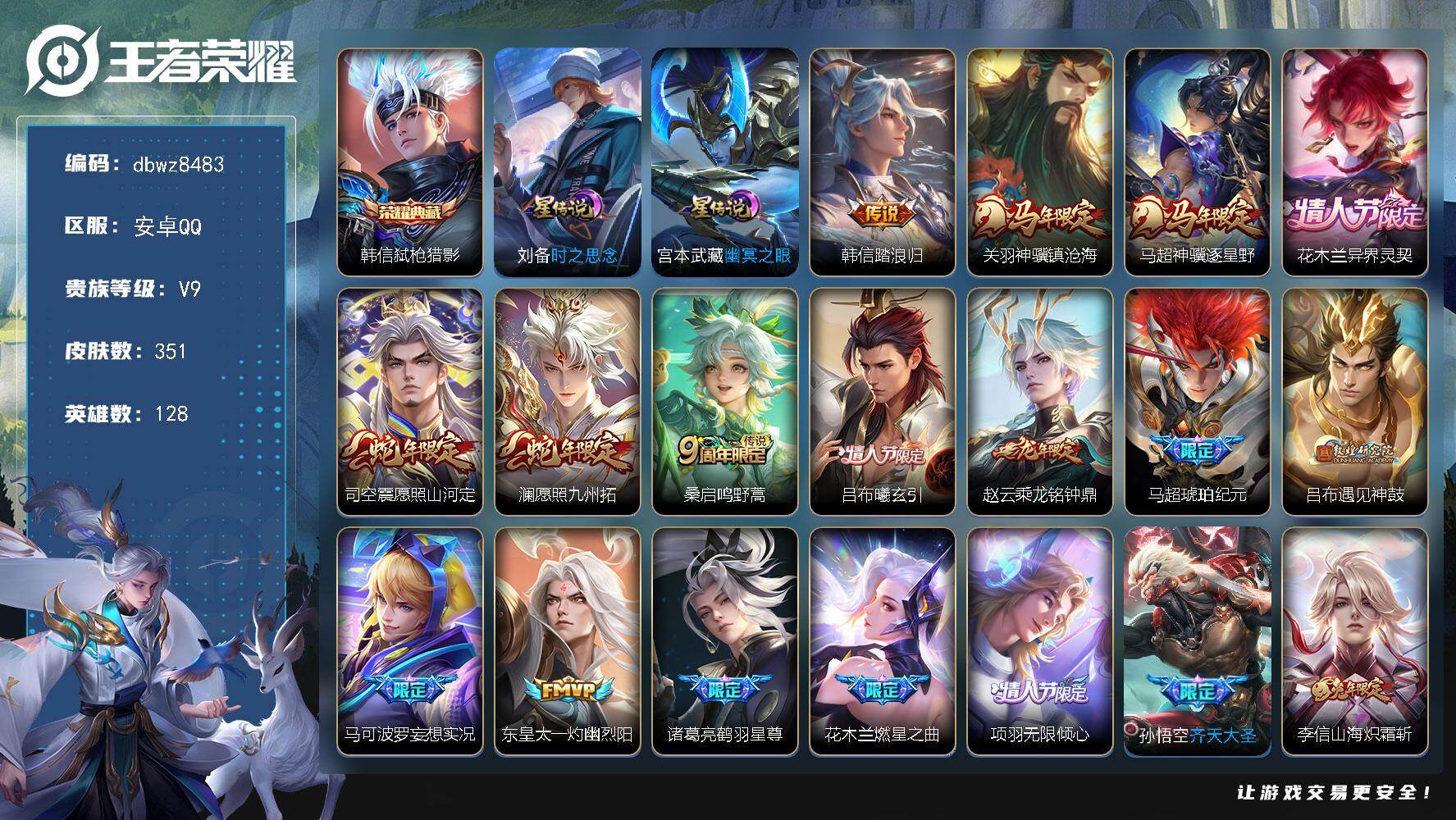 【AZW306】安卓Q-V7-永恒钻石III段位-128英雄-224皮肤-1典