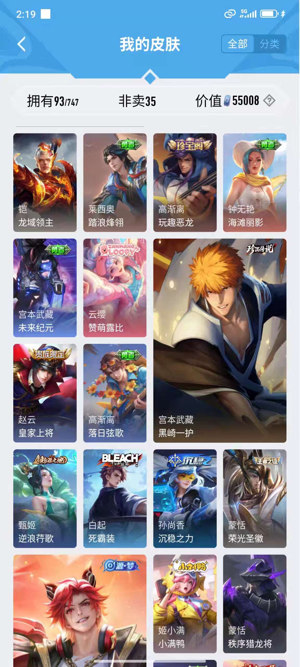 [王者荣耀]V71典藏11传说60史诗241皮肤最强王者
