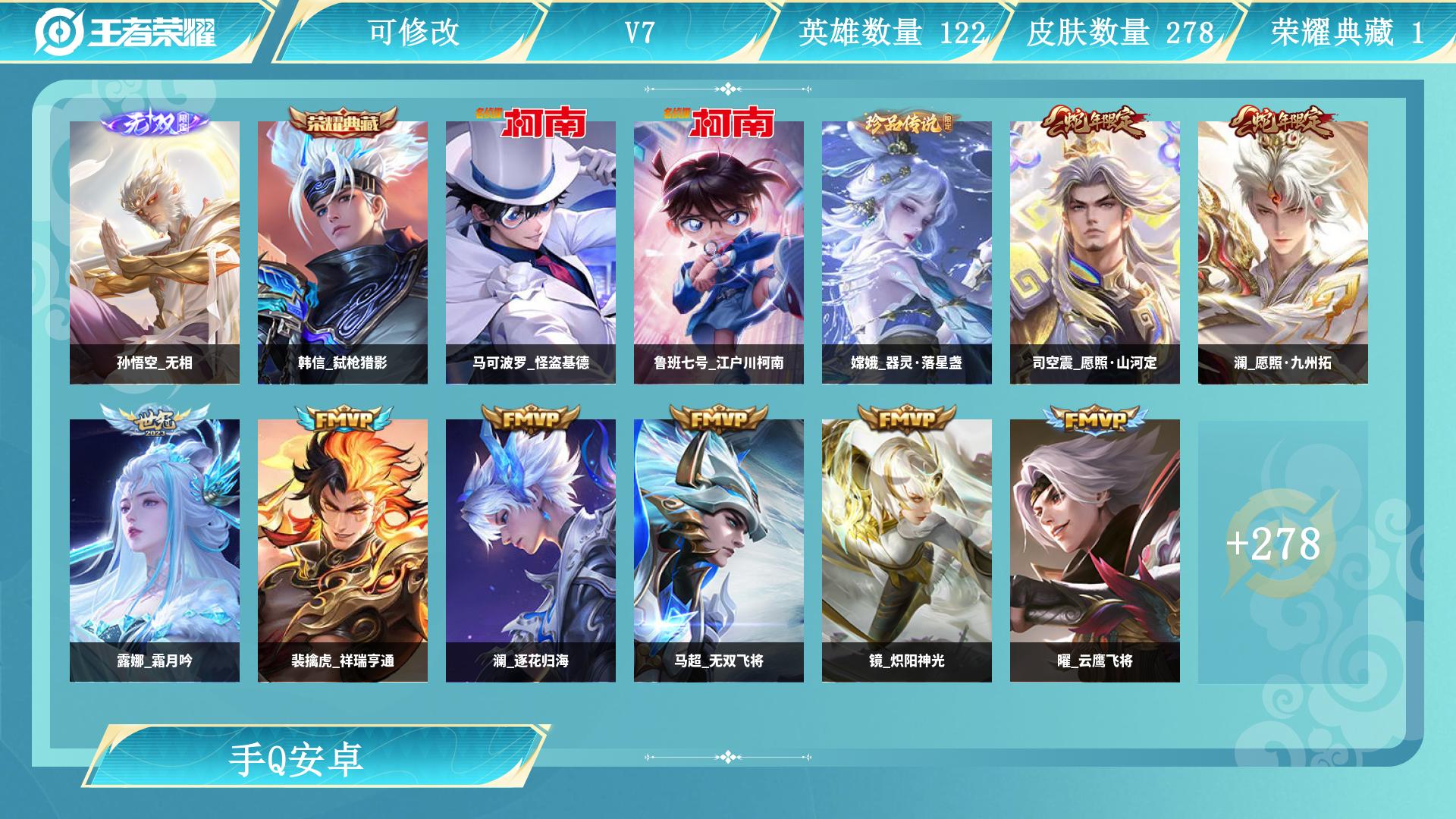 安卓Q-V7-最强王者段位-128英雄-265皮肤-2典藏皮
