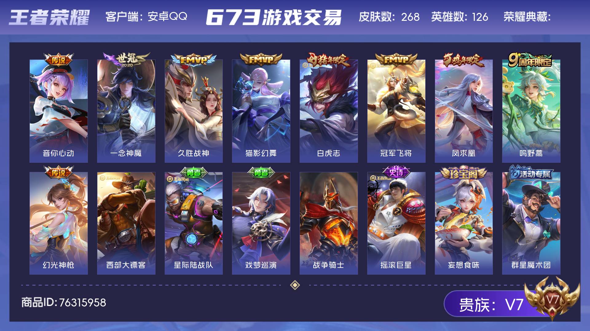 V7 皮肤268 英雄126 尊贵铂金 传说9