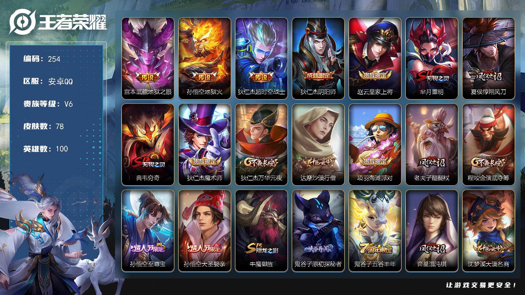 安卓QQ 可二次 v8 160皮肤 3典藏 24传说 底价出售
