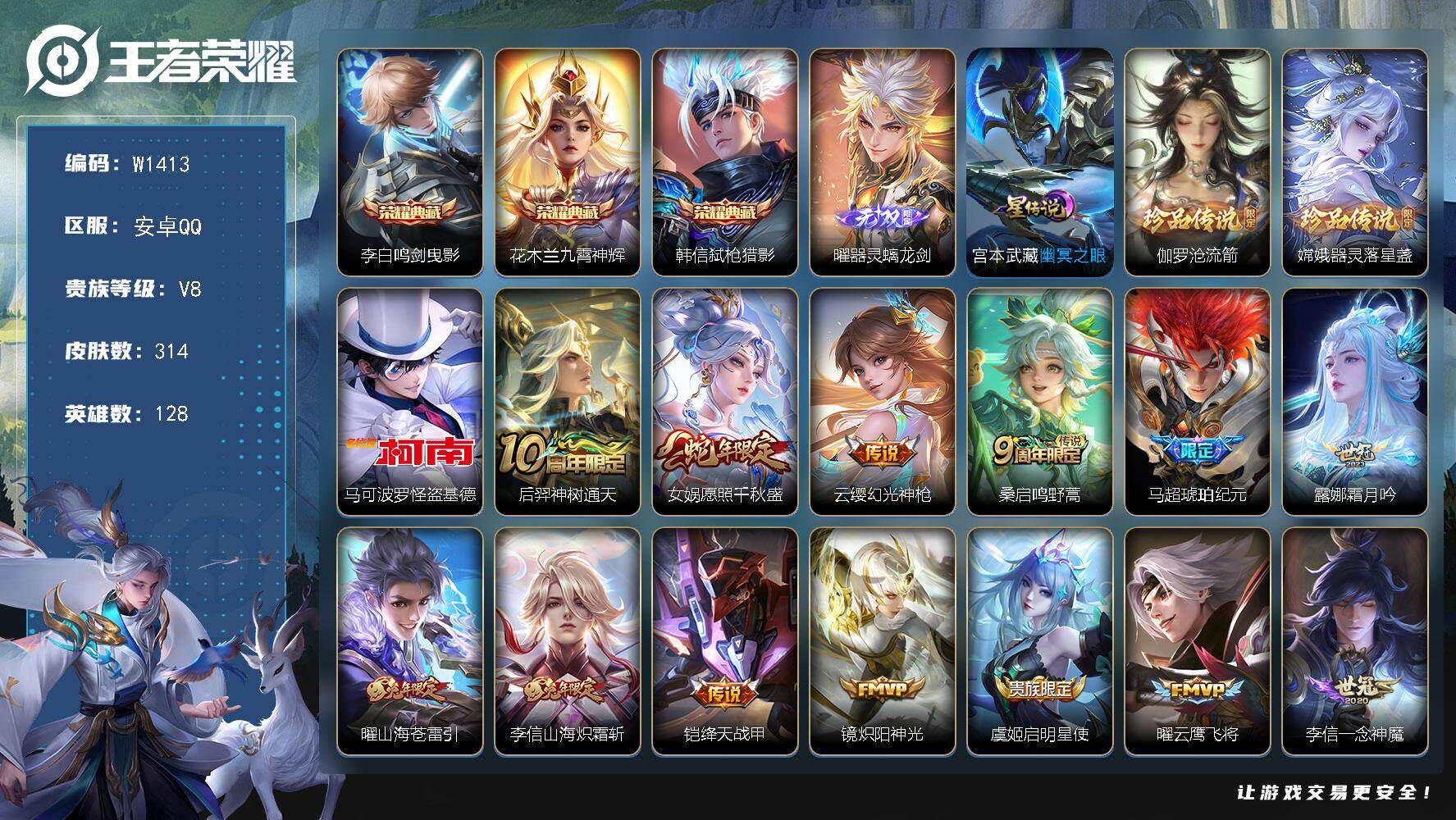 V8-最强王者段位-128英雄-311皮肤-1典藏皮肤-21传说