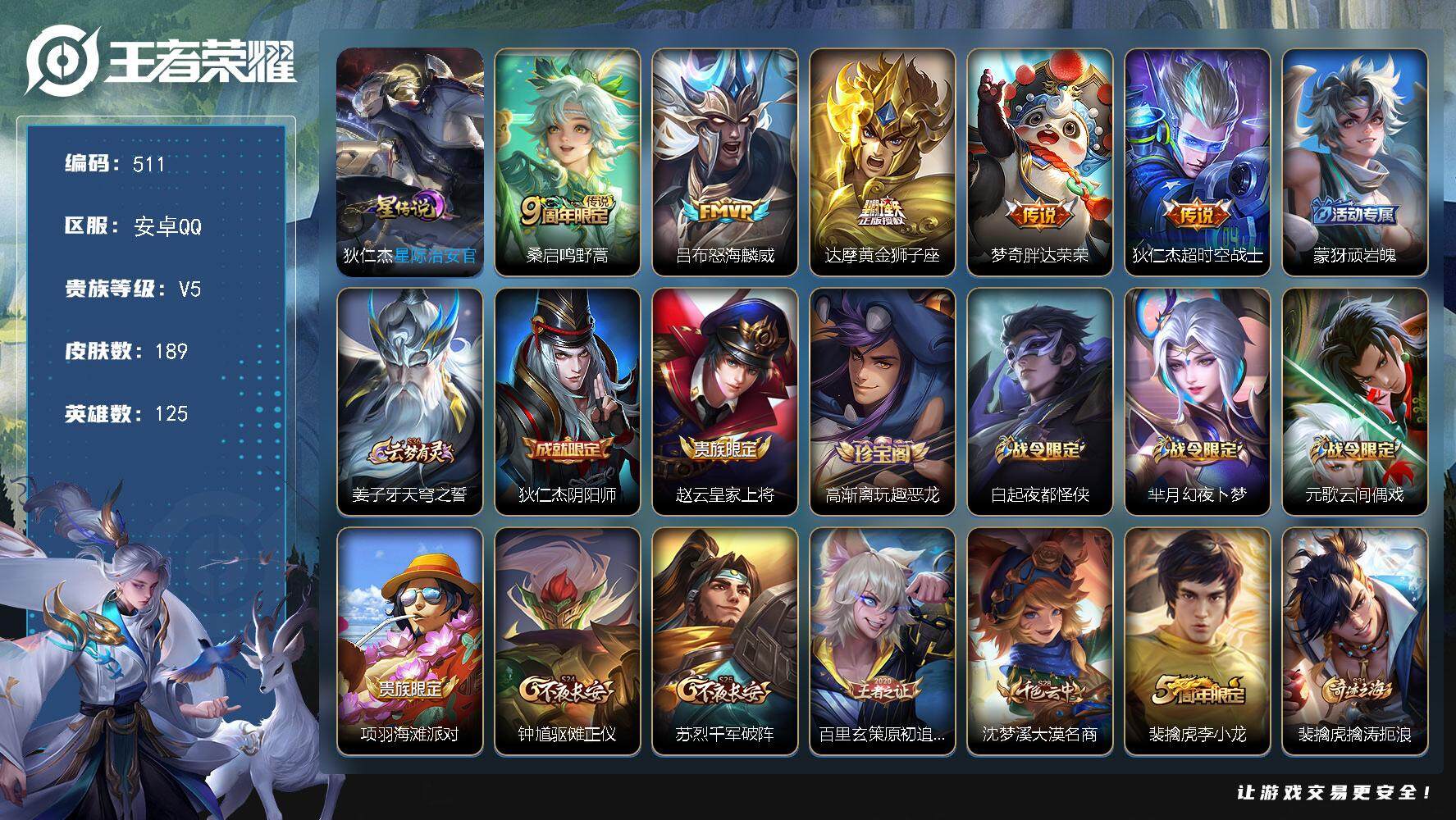 安卓Q-V9-永恒钻石V段位-126英雄-405皮肤-6典藏-0珍品无双-0无