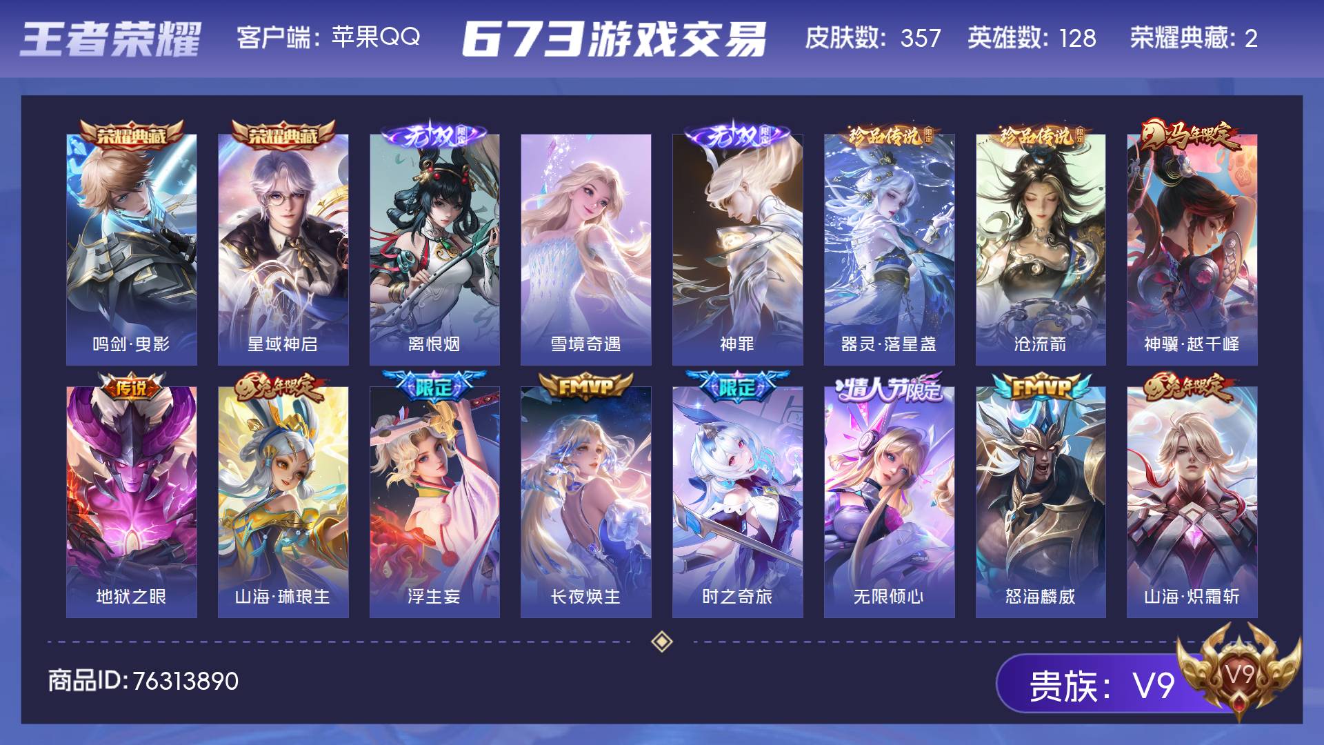 V9 皮肤357 英雄128 荣耀王者 荣耀典藏2 无双皮肤3 珍品传说2 传说25
