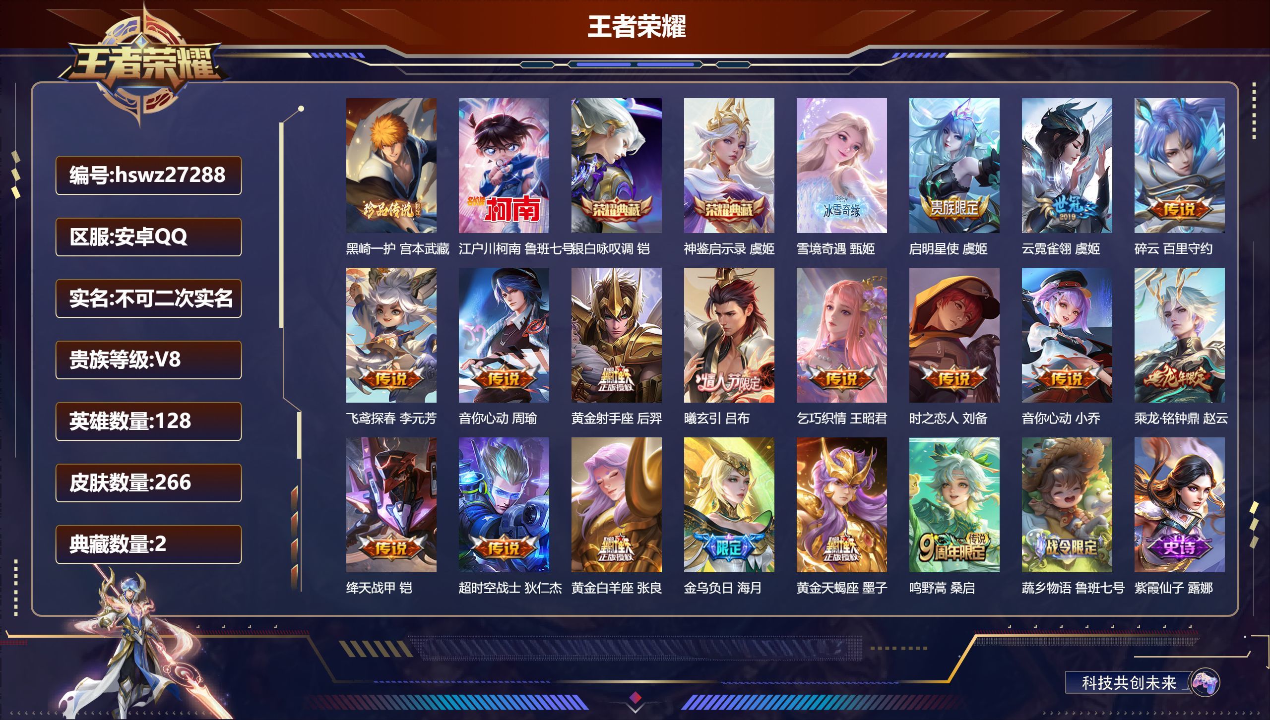可二次-贵8-121英雄-211皮肤-1典藏-8传说-1星元-249幸运值-满铭文
