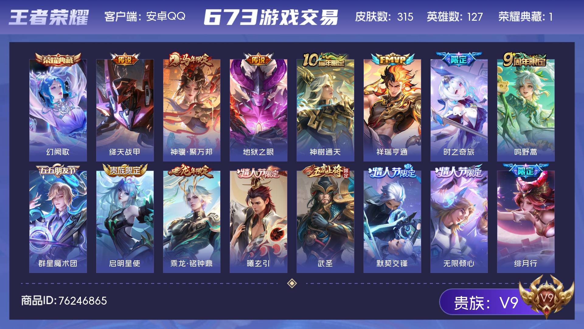 【16776580】安卓Q-V7-至尊星耀I段位-127英雄-318皮肤-1典