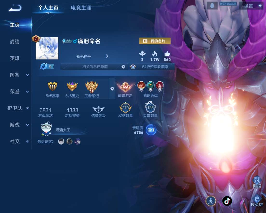 贵族等级v10,英雄数量126.典藏皮肤数量2皮肤数量271