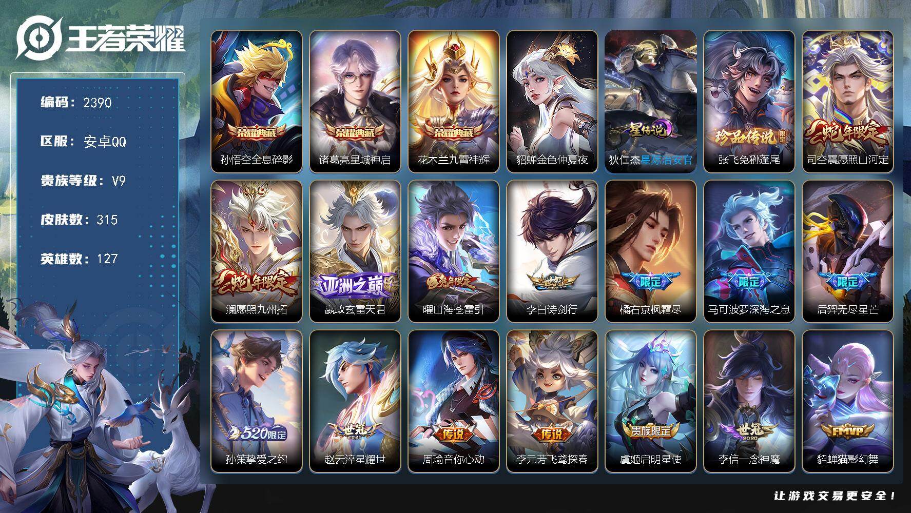 安卓Q-V0-至尊星耀II段位-127英雄-110皮肤-2传说-20史诗【传说