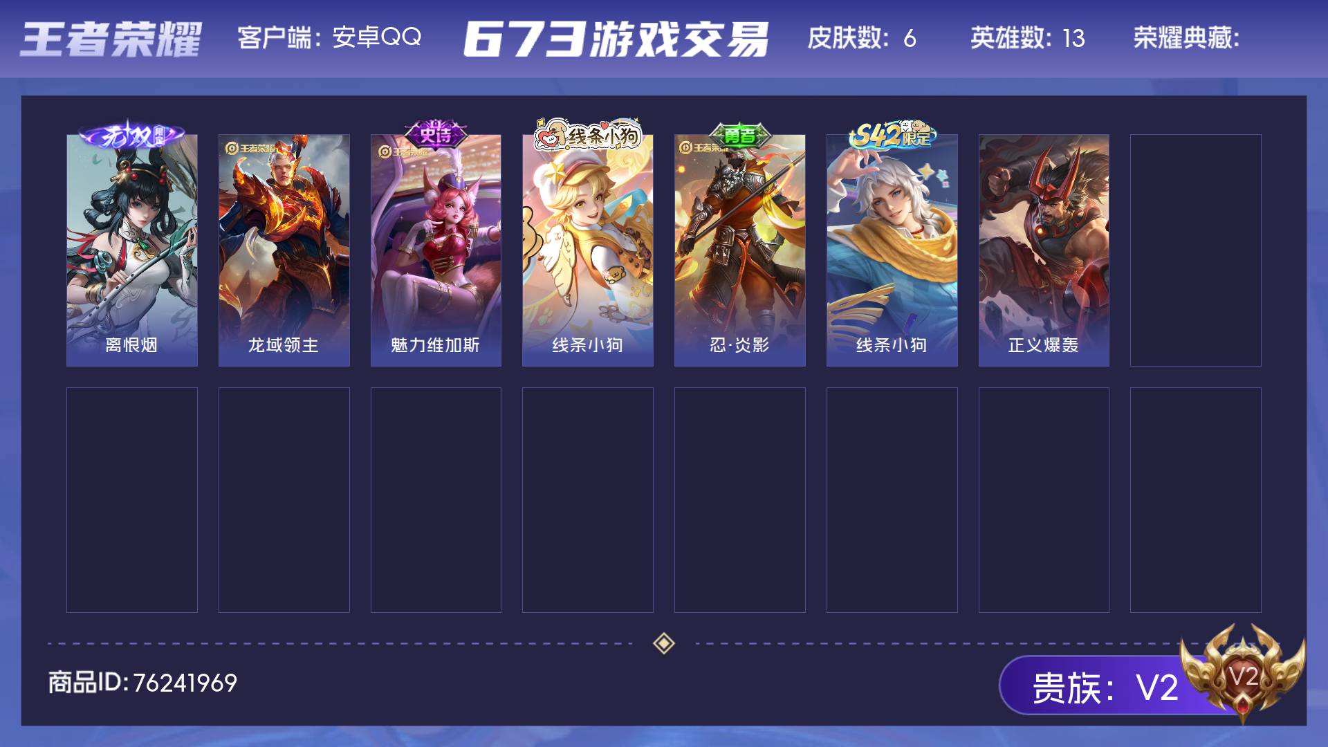 【16776578】安卓Q-V9-最强王者段位-127英雄-548皮肤-13典