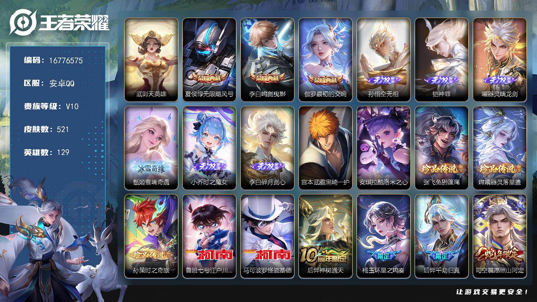 【16776575】安卓Q-V10-尊贵铂金I段位-129英雄-521皮肤-3