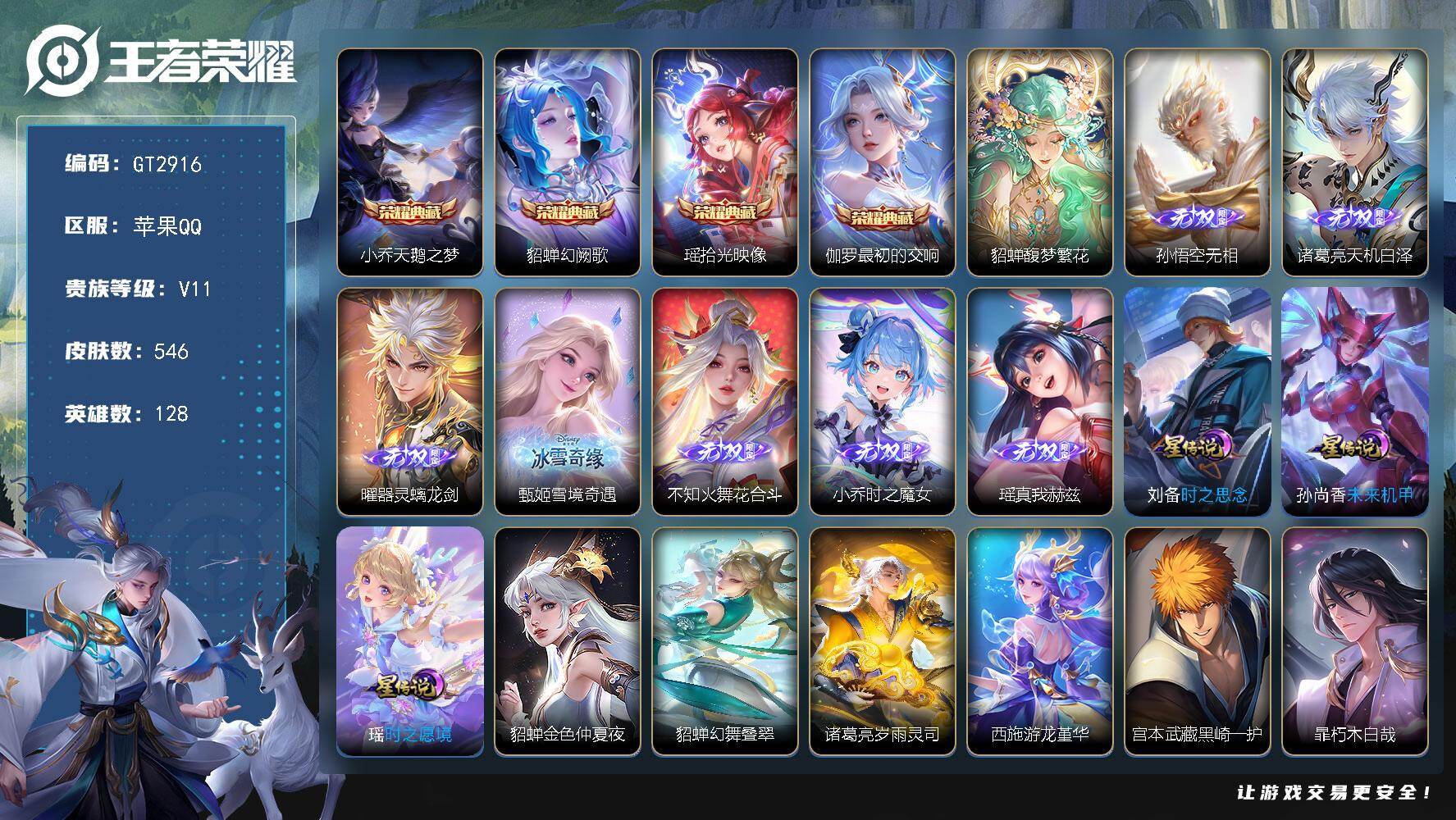 可换绑【店长珍藏推荐无双V10高质量女号·11万流光积分·有传承位·瑶西施全皮