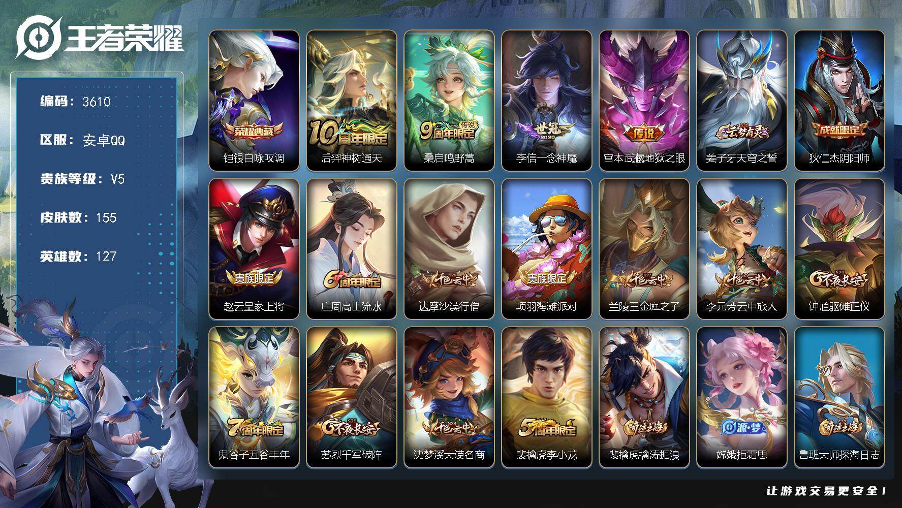 【秒换绑】安卓Q-V9-尊贵铂金I段位-128英雄-231皮肤-1典藏皮肤-1