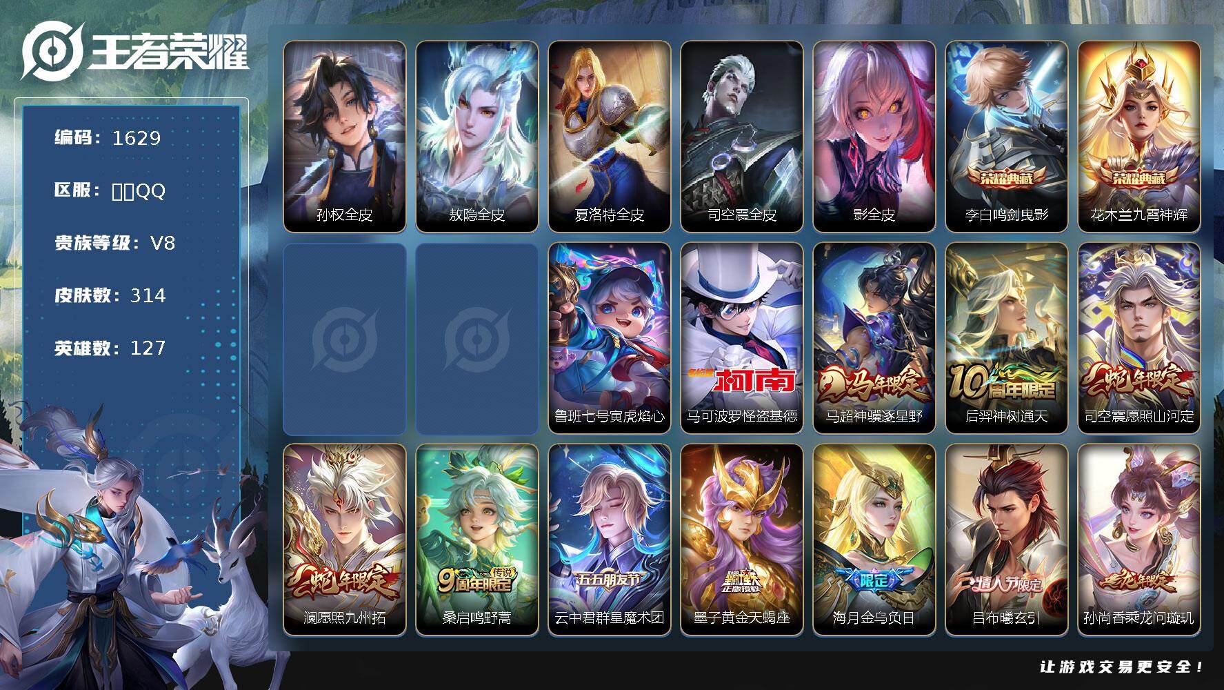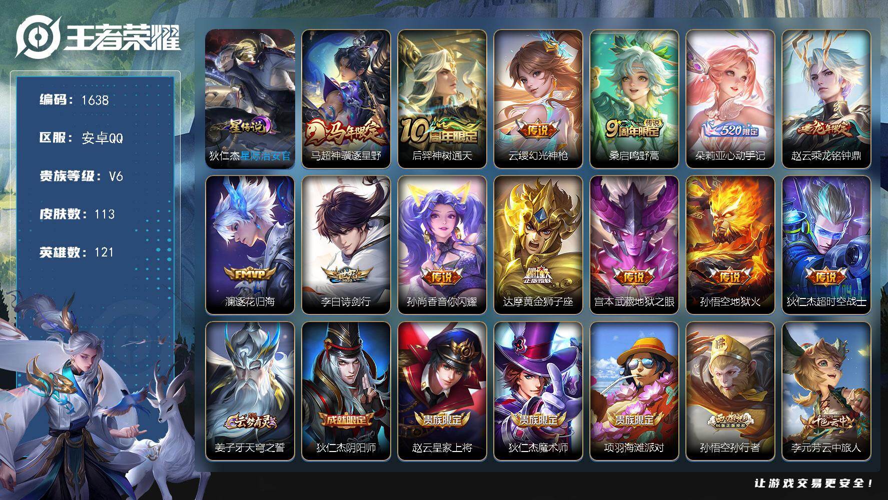 V6-最强王者段位-127英雄-202皮肤-1典藏皮肤-1无双-10传说-64史诗