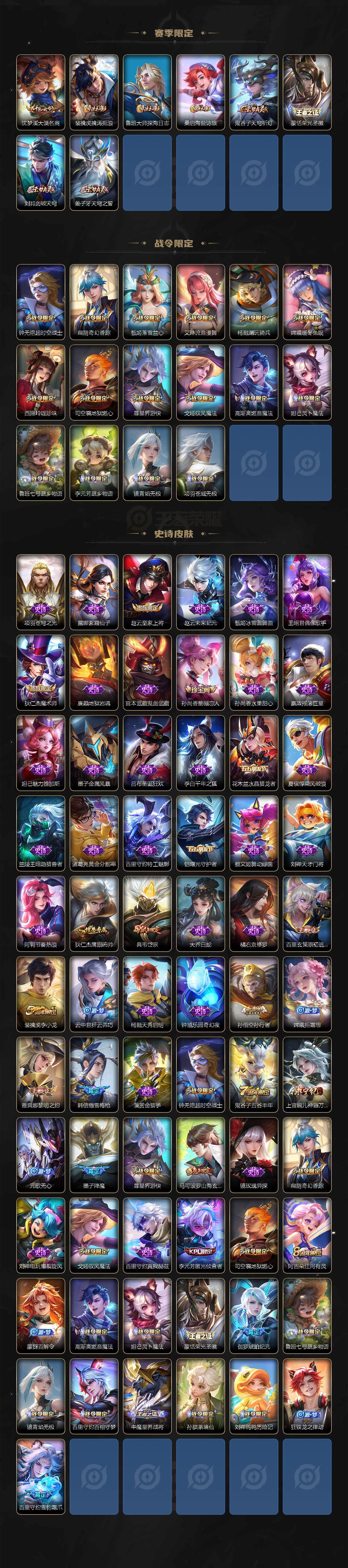 V7-最强王者段位-124英雄-207皮肤-2典藏-0珍品无双-0无双-0珍品传说-4传说-65史诗