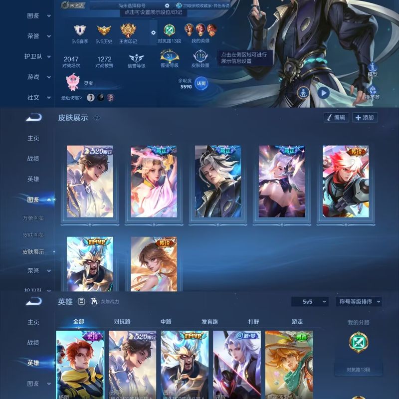 皮肤数69传说皮肤数1史诗皮肤数19英雄数73营地id186