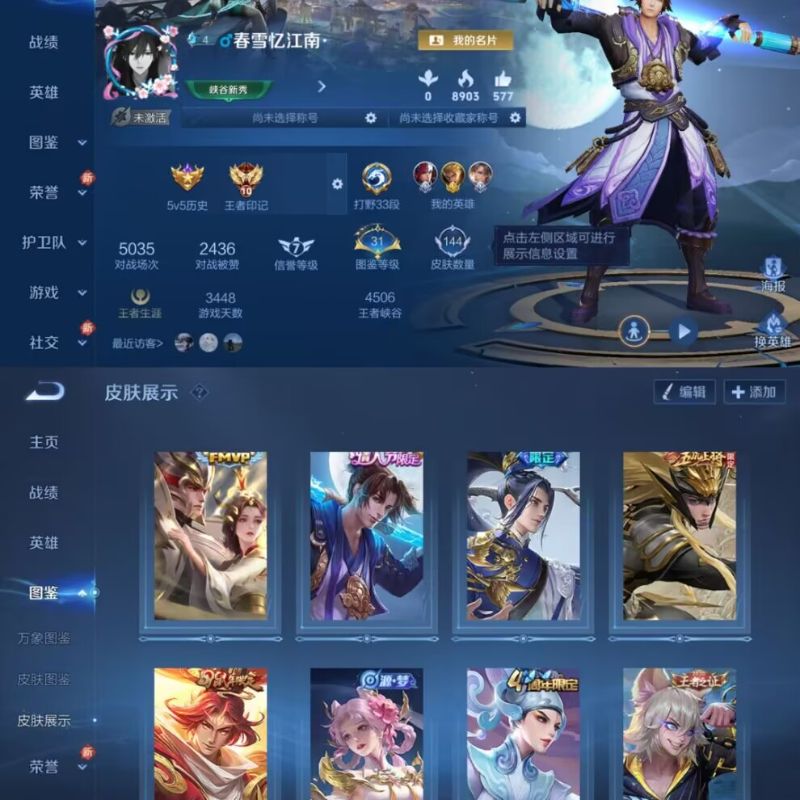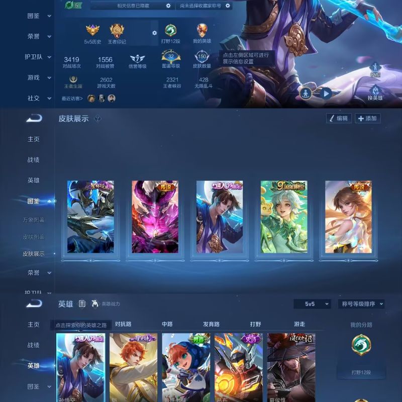 贵族6/皮肤214/典藏1/传说7/史诗62/英雄127/孙权全皮/