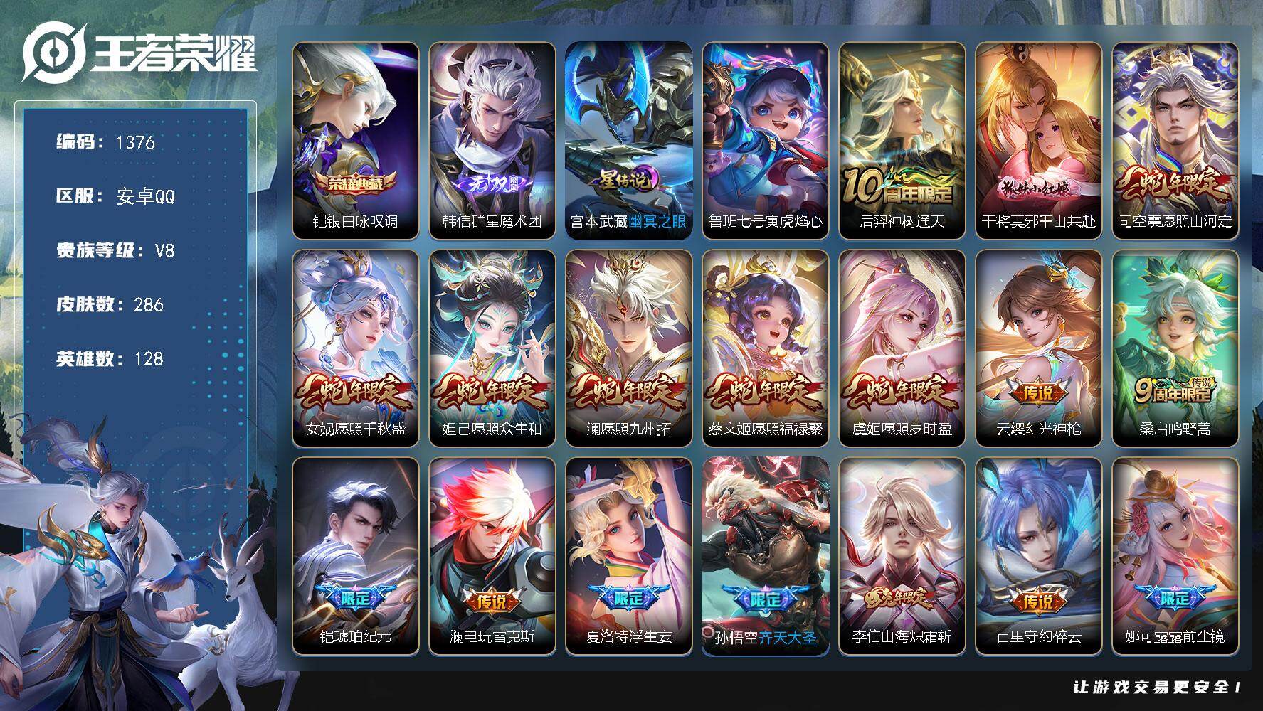 安卓Q-V7-永恒钻石I段位-125英雄-196皮肤-16传说-61史诗【英雄