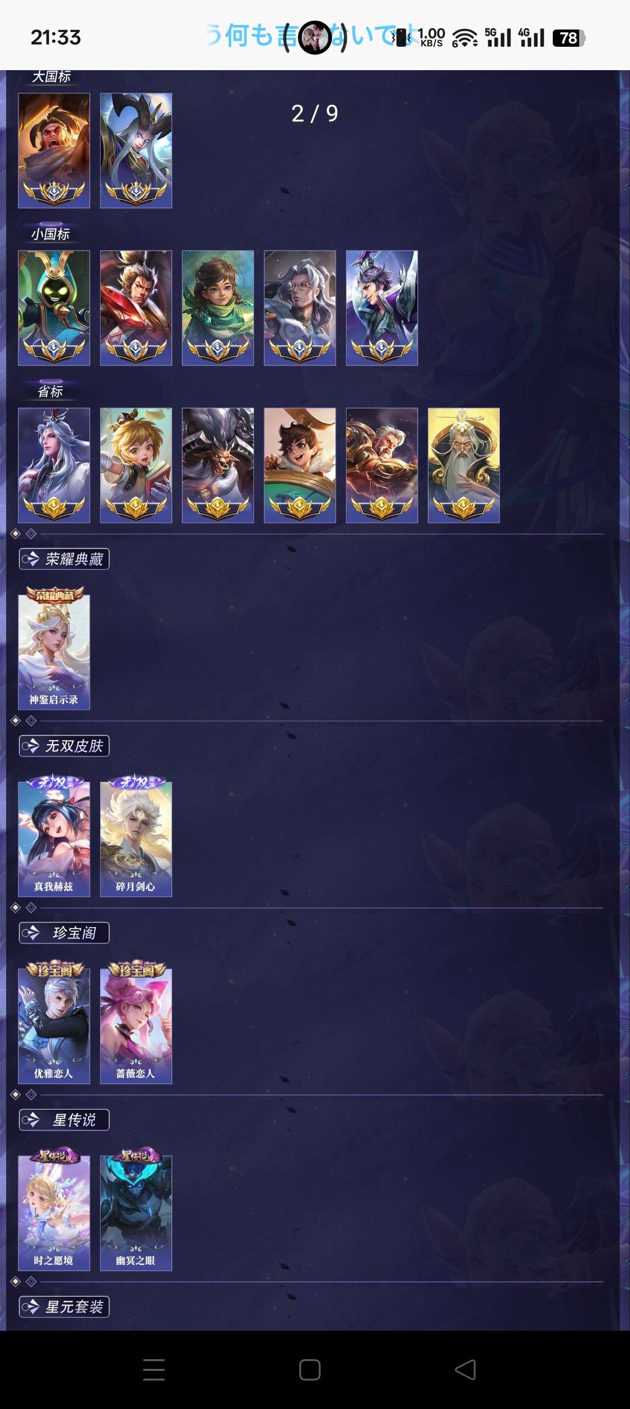 皮肤313 英雄127 荣耀王者 荣耀典藏1 无双皮肤2 传说35 其他皮肤129-两大国五小国,92段游走