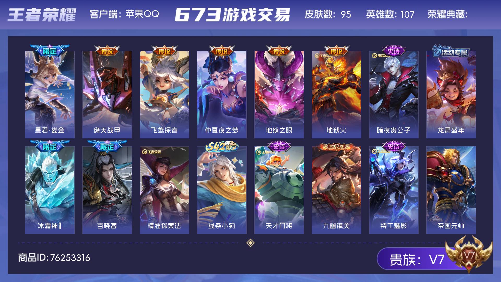 V7 皮肤95 英雄107 至尊星耀 传说6