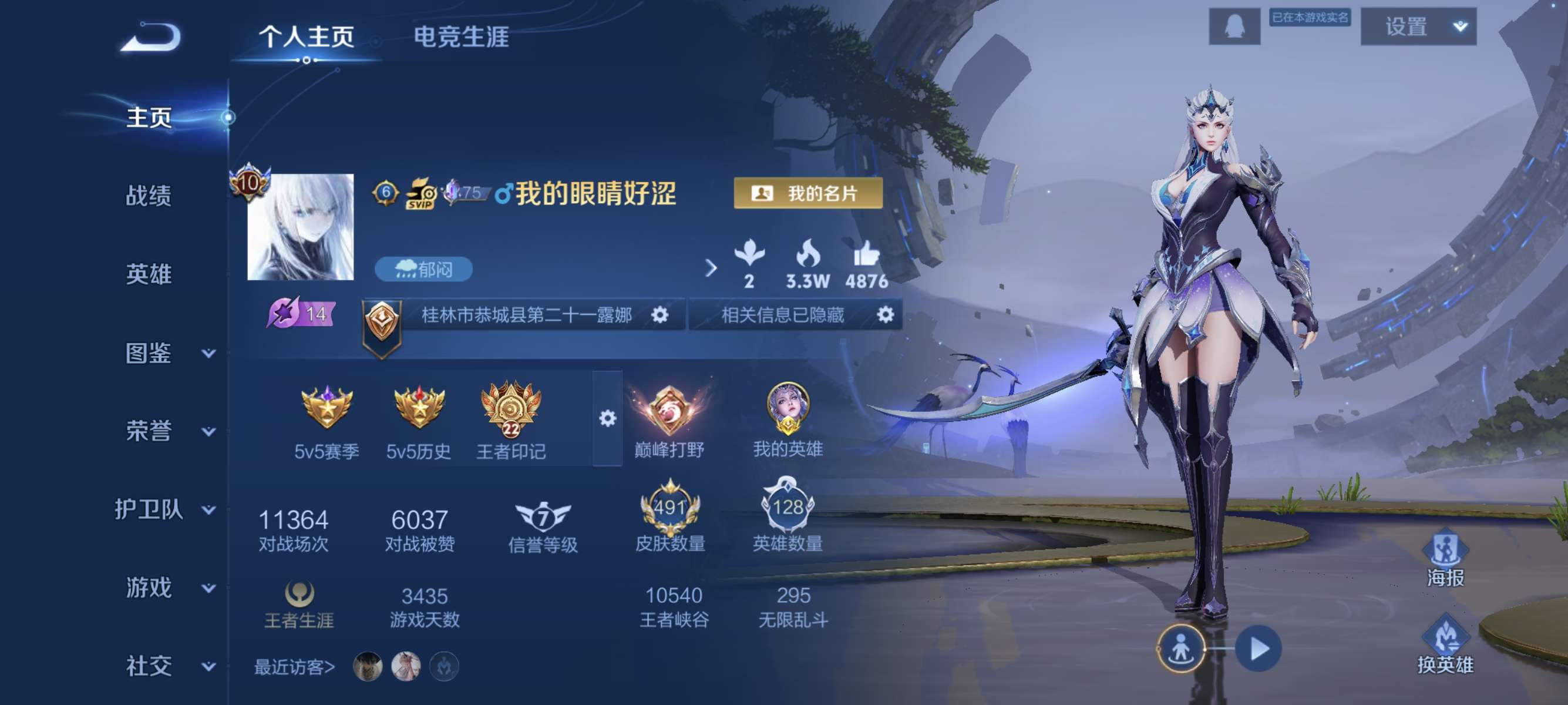 【V有社交限制,不影响账号安全和游戏】贵族等级: V9 英雄数: 123 皮肤