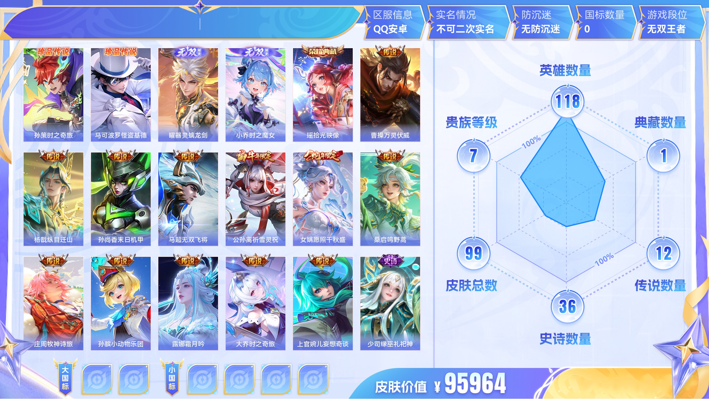 无双1 典藏3 传说22 史诗58 限定62 英雄125