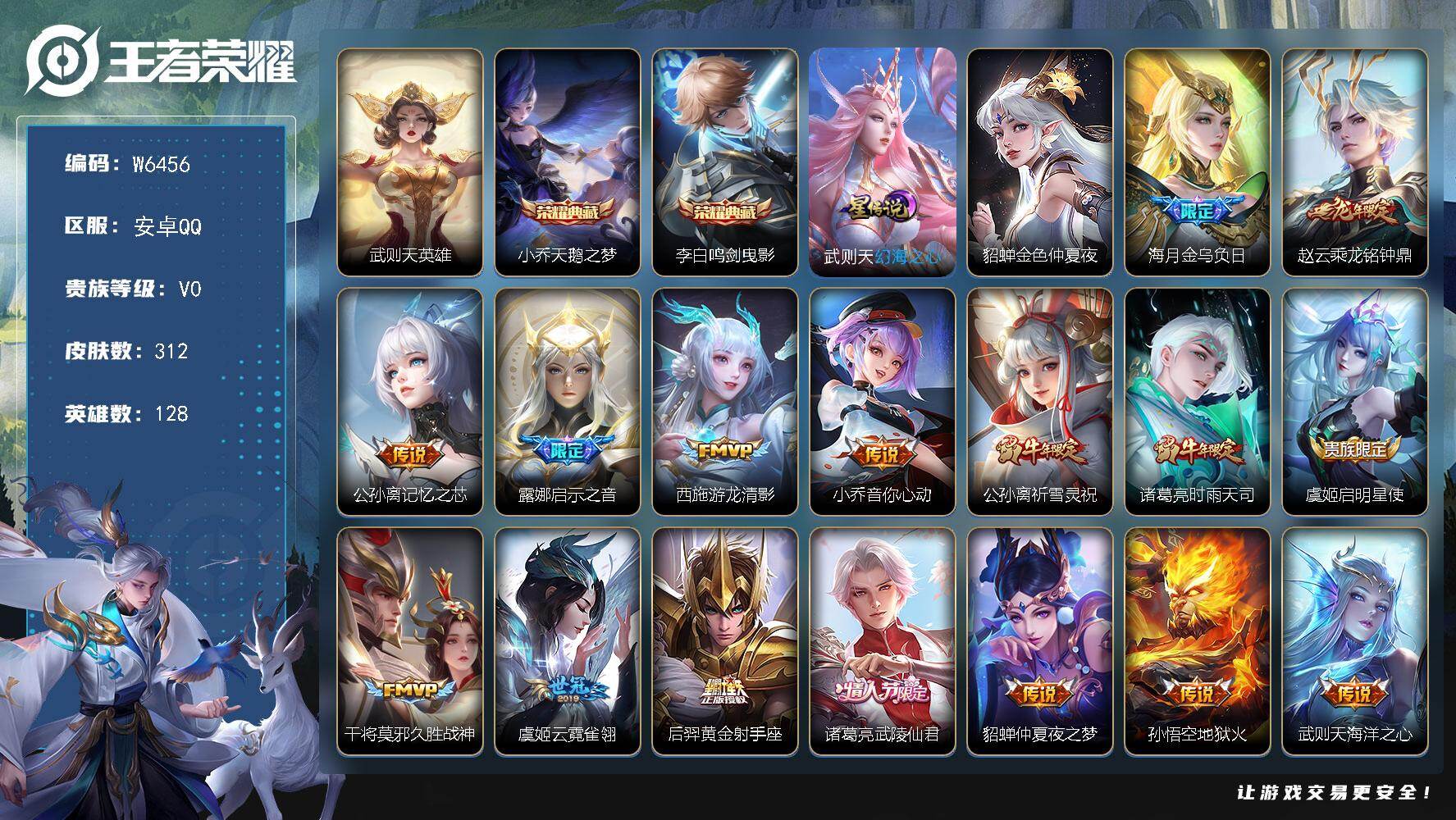 【W6456】安卓Q区-可二次-贵8-128英雄-309皮肤-3典藏(武则天)
