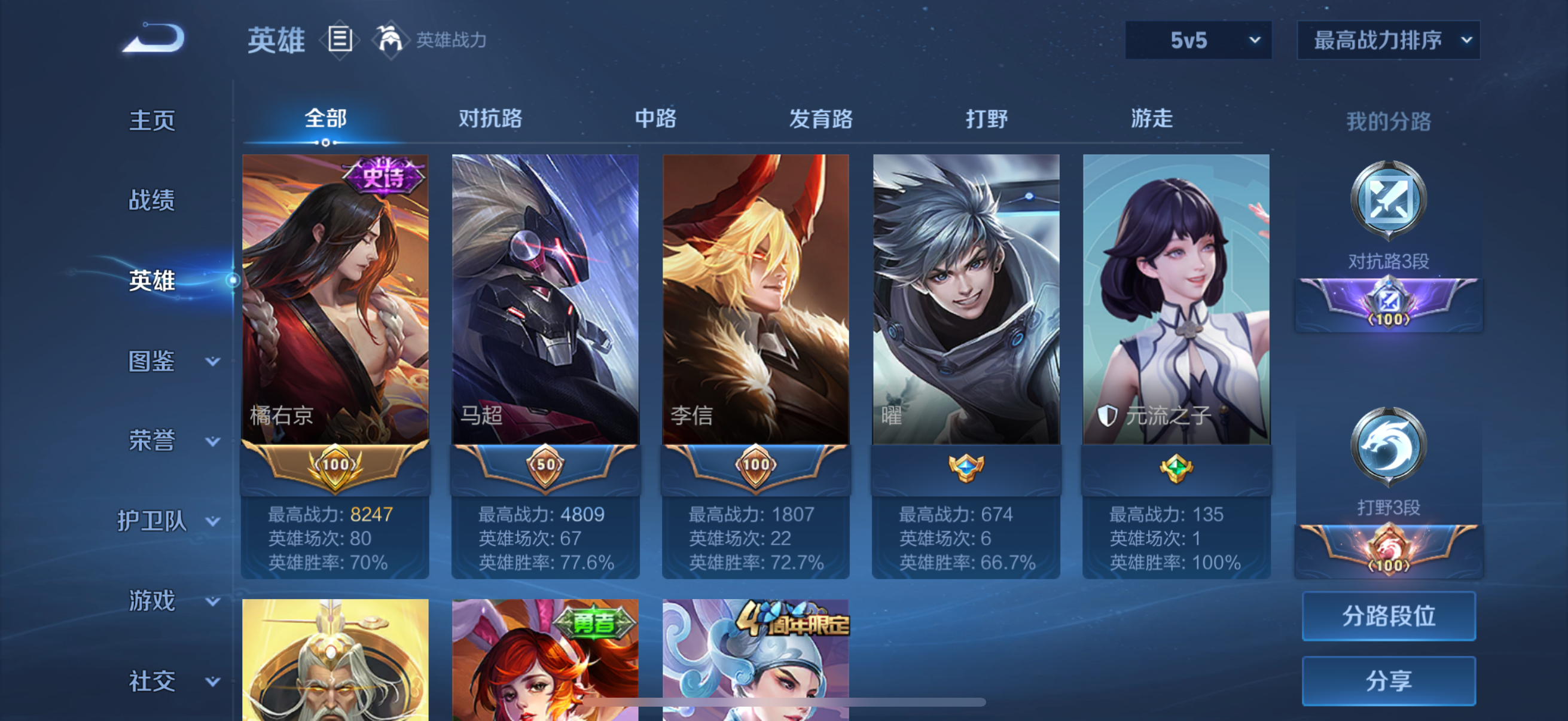 小号 有马超神威 孙尚香异界灵契 李信兔年限定和一年神魔 还有好几个史诗