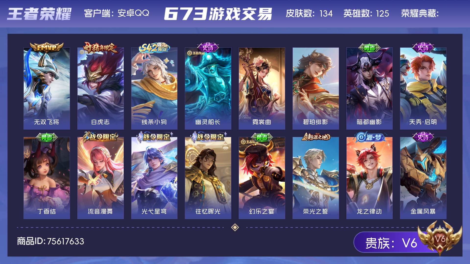 V6 皮肤134 英雄125 最强王者 传说2 其他皮肤138