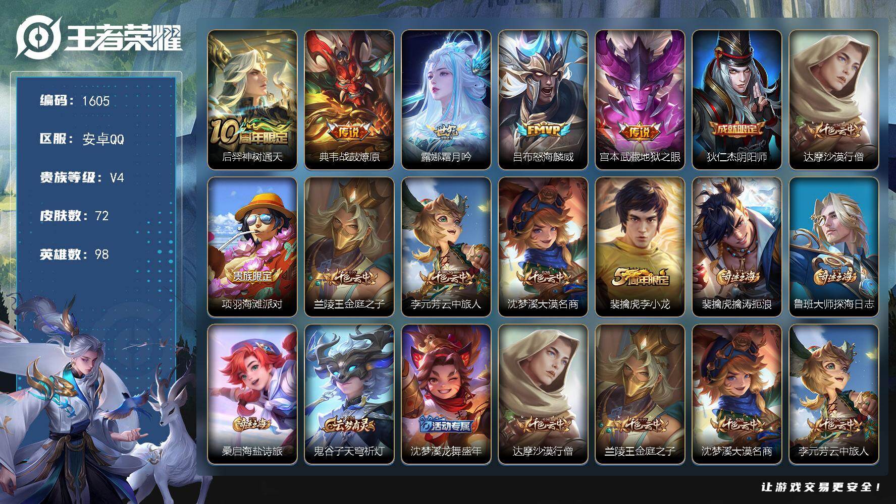 【16776333】安卓Q-V6-最强王者段位-127英雄-203皮肤-1典藏