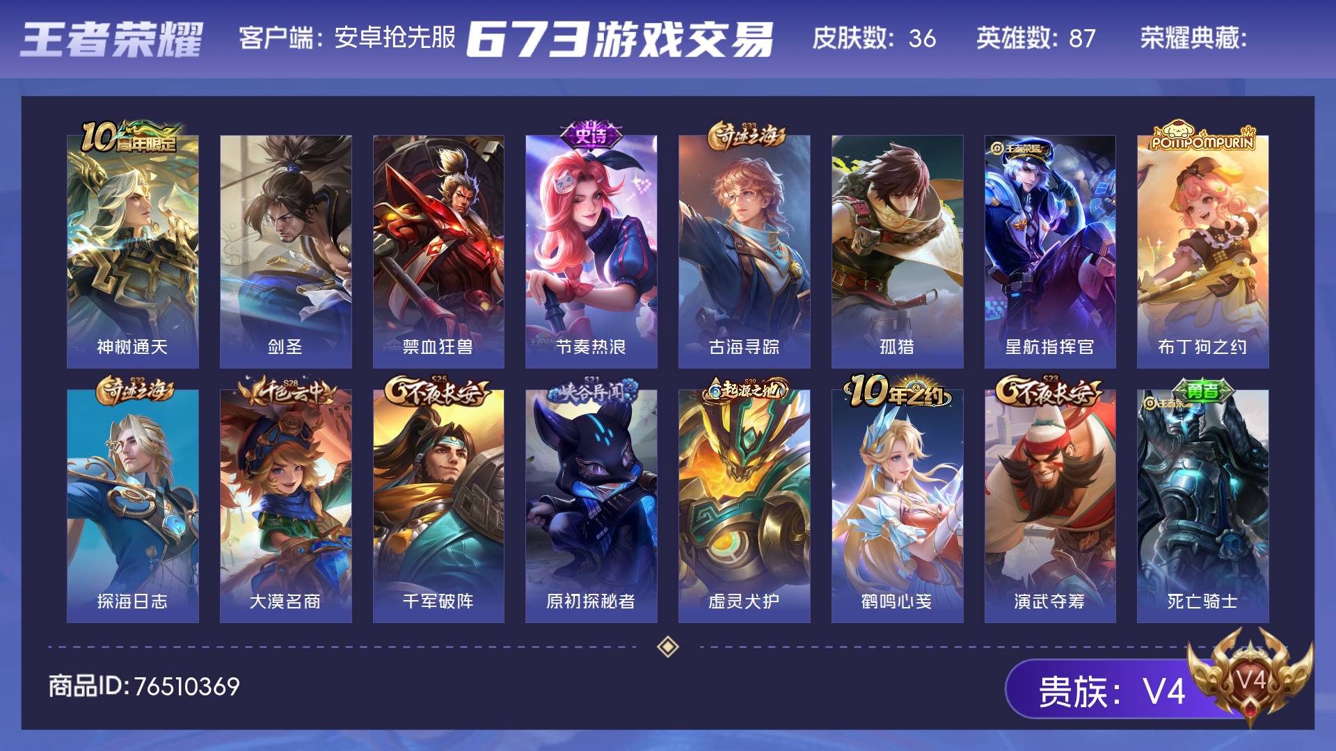 V4 皮肤36 英雄87 尊贵铂金 传说1