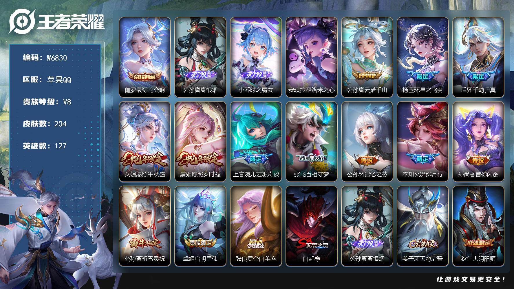 【W6830】nice女号-苹果Q区-可二次-贵8-127英雄-204皮肤-1