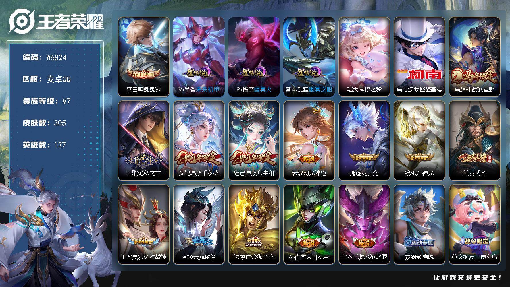 【安卓苹果Qv区】1788皮肤任选或传说卡--在线秒发
