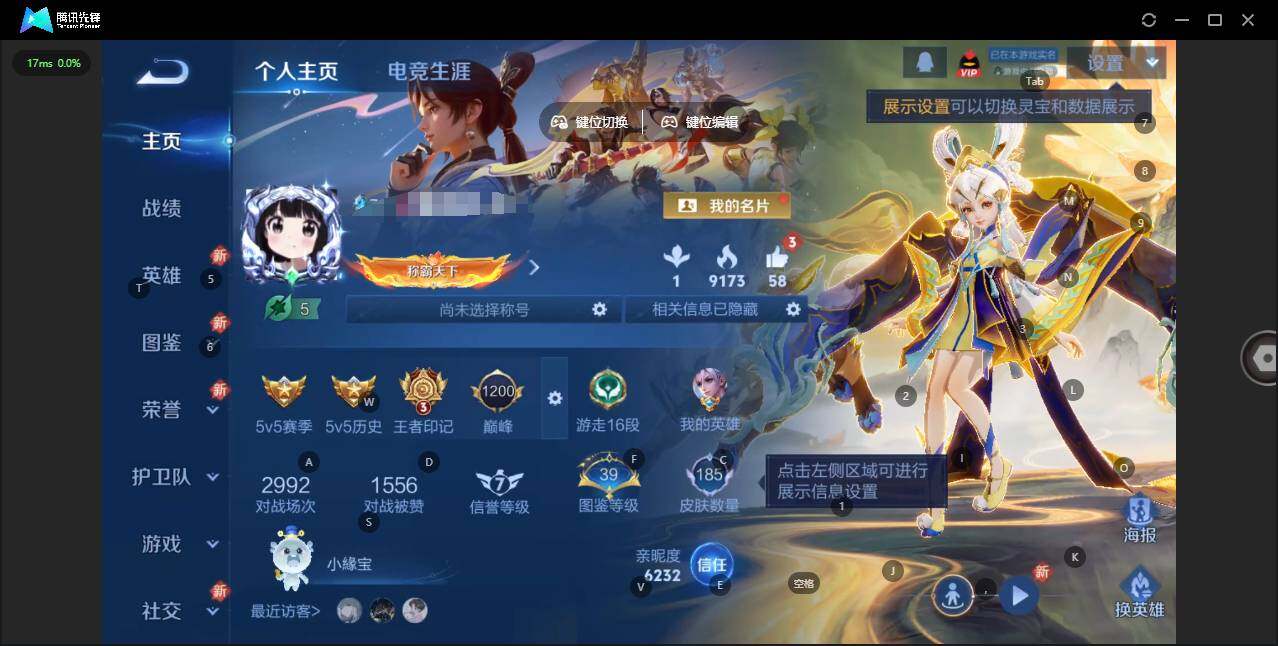 实名: 可修改 贵族等级: V6 英雄数: 95 皮肤数: 94 限定皮: 李